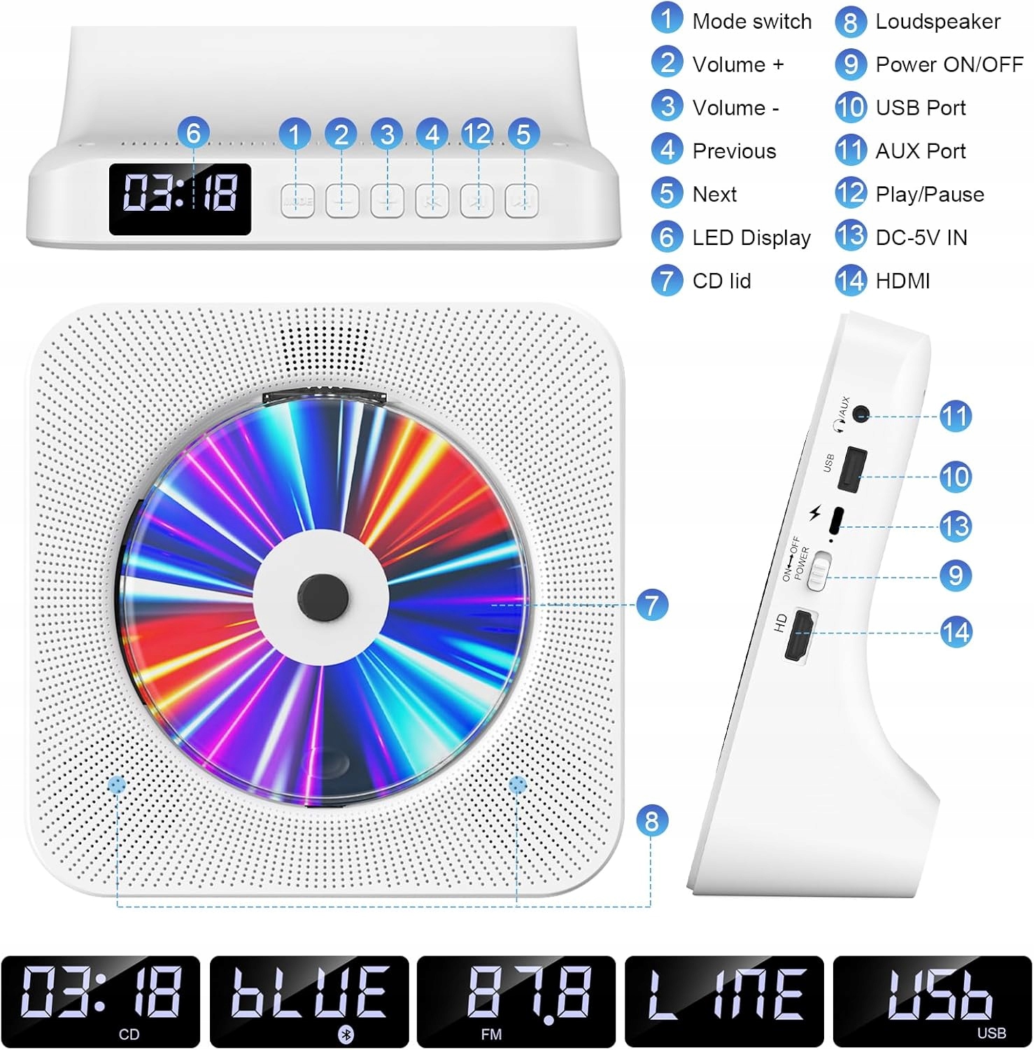 <р> Благодаря функции Bluetooth вы можете легко подключиться к своему смартфону или планшету и наслаждаться беспроводной потоковой передачей. Порт USB обеспечивает быстрый доступ к файлам, а благодаря HDMI вы получите превосходное качество изображения на большом экране. <р> Благодаря функции FM-радио этот плеер также позволяет вам слушать ваши любимые радиостанции. Пульт дистанционного управления обеспечивает полное удобство управления из любой точки помещения. <р> Это идеальное решение для любителей мультимедиа, ценящих универсальность и удобство использования в одном устройстве.Параметры продукта