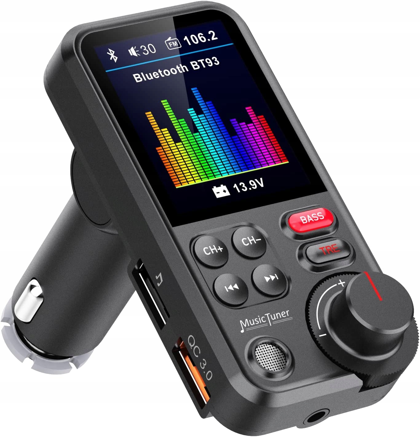 FM -передатчик позволит вам насладиться любимой музыкой на любом стерео -автомобильном наборе, который есть у радио. Он может воспроизводить песни из USB или Bluetooth с вашего устройства. Слушайте все, что на стереодинамиках. Он имеет встроенный mp3, WMA, APE, FLAC, WAV Decoder, благодаря которого он может читать песни непосредственно с Micro SD -карты. Он может быть настроен на полный диапазон частот с цифровым управлением FM 87,5 МГц - 108,0 МГц