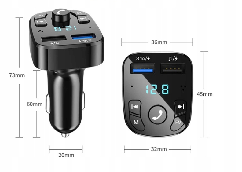 BLUETOOTH FM-ПЕРЕДАВАЧ MP3 ЗАРЯДНИЙ ПРИСТРІЙ АУДІОПЛЕЄР 2 x USB 3.1A LED