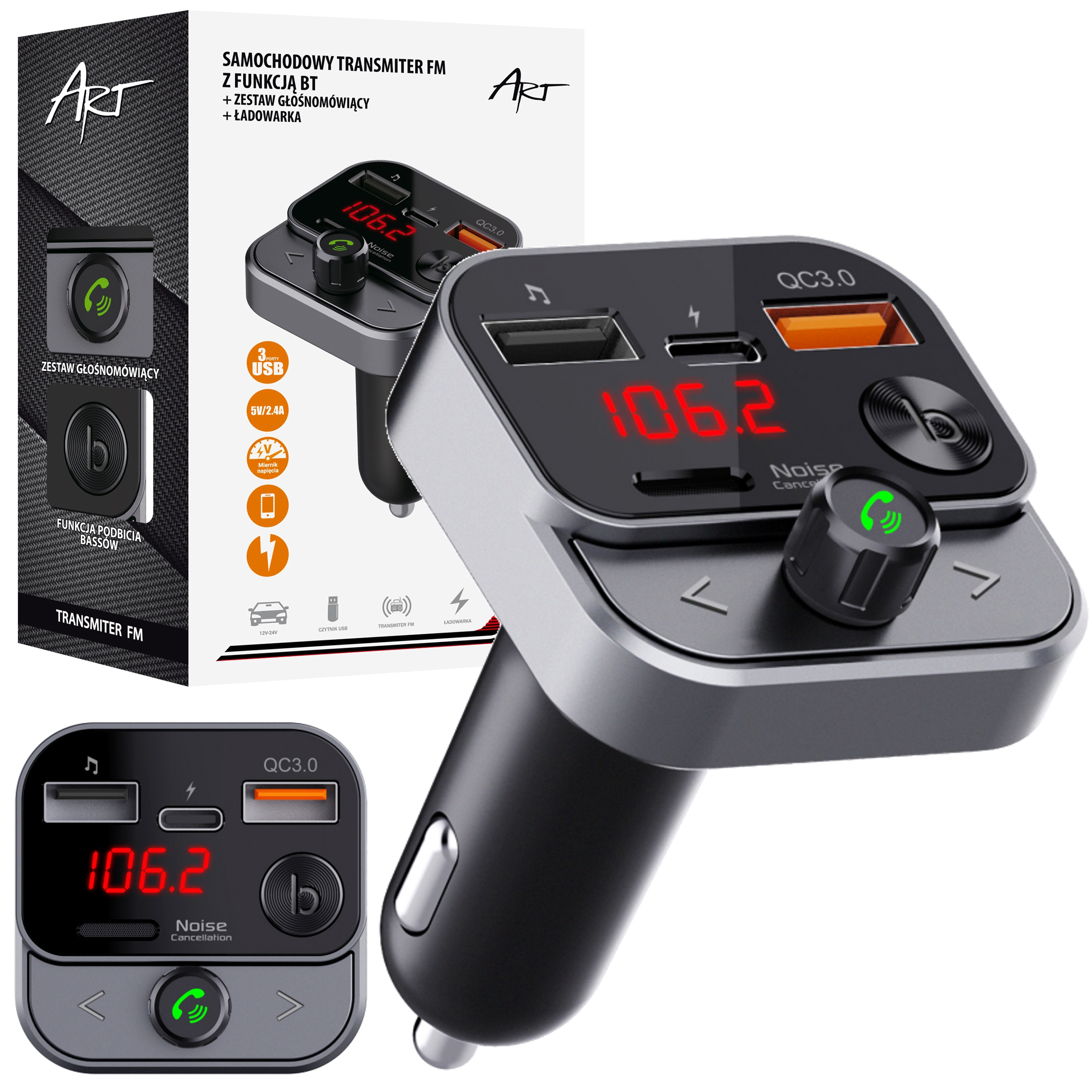 КОМПЛЕКТ ДЛЯ ТЕЛЕФОНА BLUETOOTH FM-ПЕРЕДАТЧИК QC 3.0 БЫСТРОЕ ЗАРЯДНОЕ УСТРОЙСТВО 2x USB
