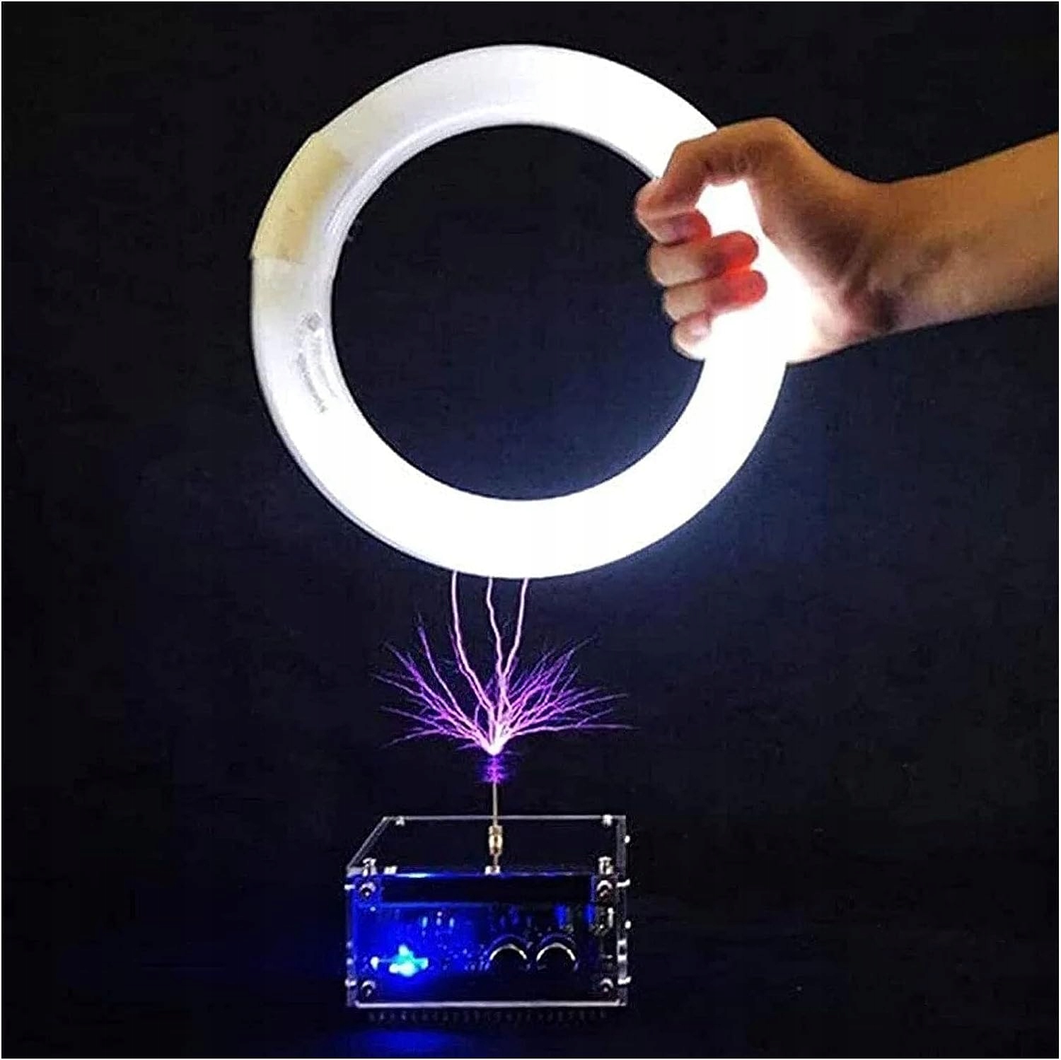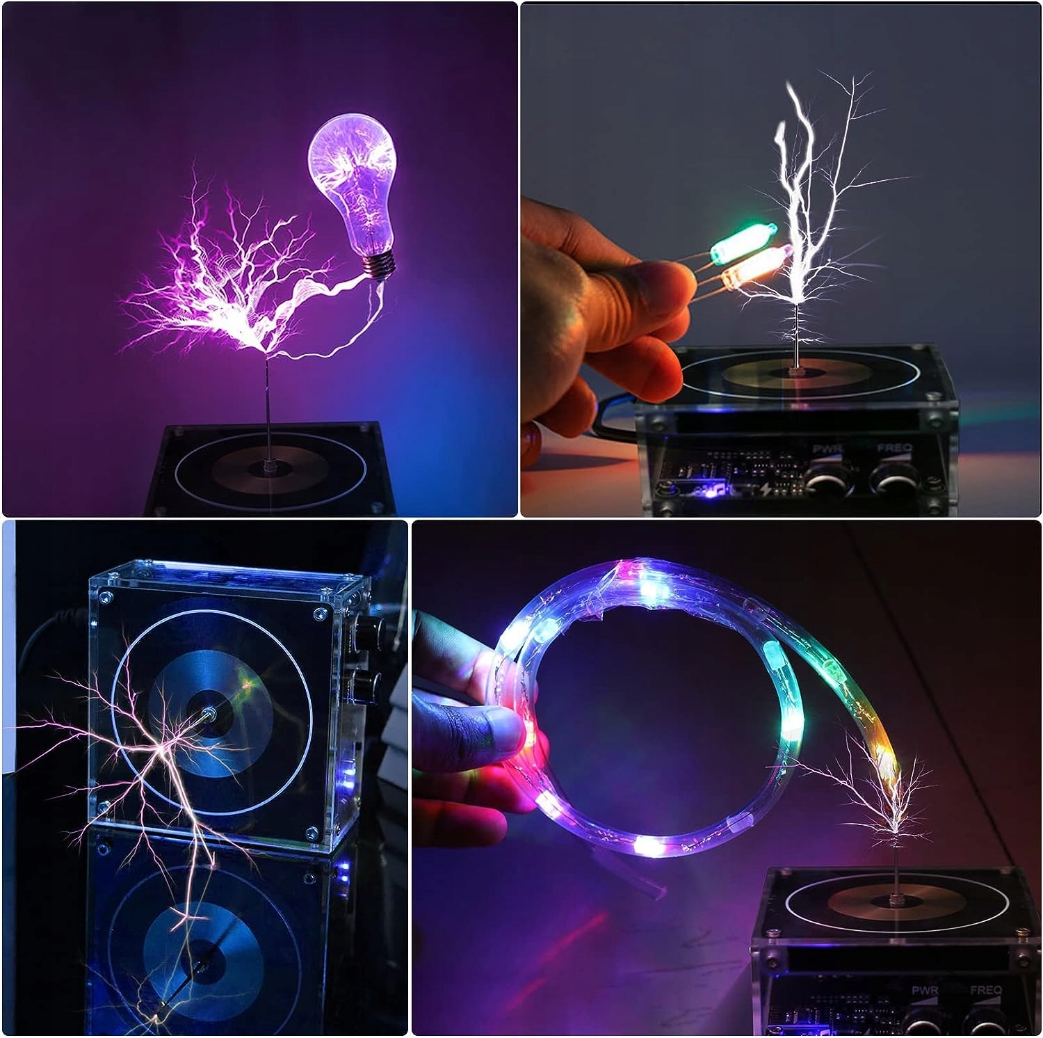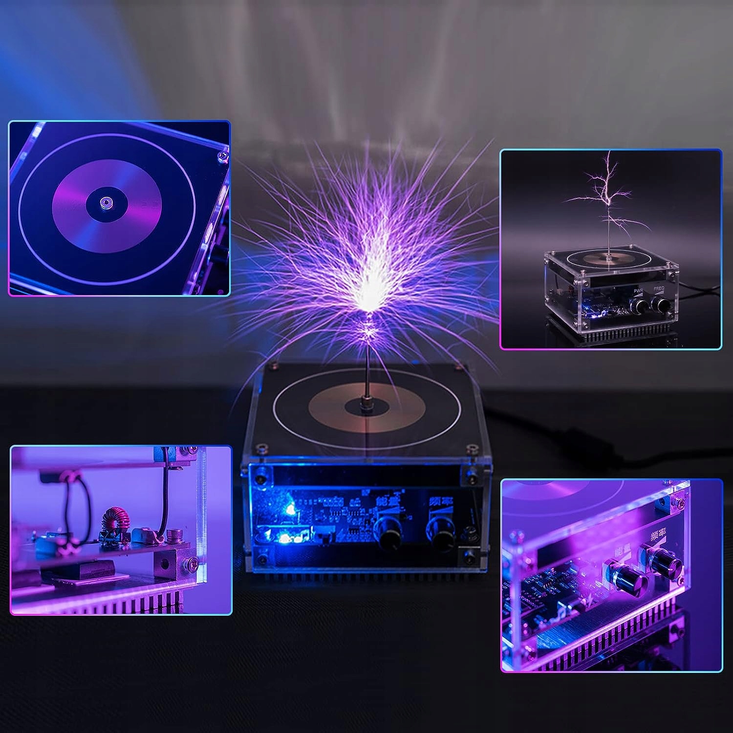 - Это интеллектуальное устройство для экспериментов с беспроводной передачей. Его можно использовать для генерации высоковольтных вспышек и проведения различных научных экспериментов, таких как беспроводная передача энергии, беспроводное освещение и испытание прочности изолятора. Преподаватели используют его, чтобы продемонстрировать учащимся принципы аугментации и высокочастотного скининга.