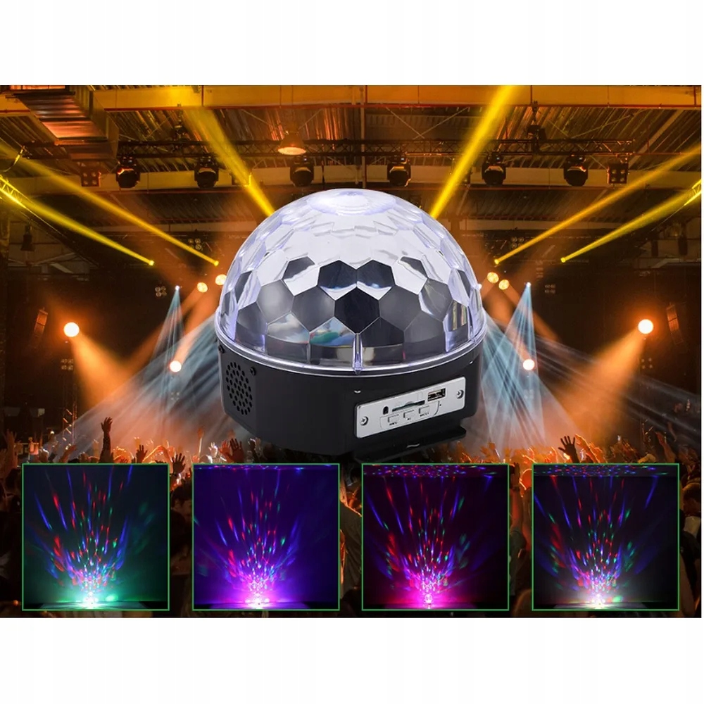 Шар имеет целых 6 мощных RGB-светодиодов ( по 3 Вт каждый) разных цветов (красный, белый, желтый, фиолетовый, зеленый и синий). Отличные световые эффекты обеспечивают вращающаяся на 360° головка и функция подсветки диодов в ритм воспроизведения музыки. Кроме того, он может отображать различные шаблоны без воспроизведения звука.