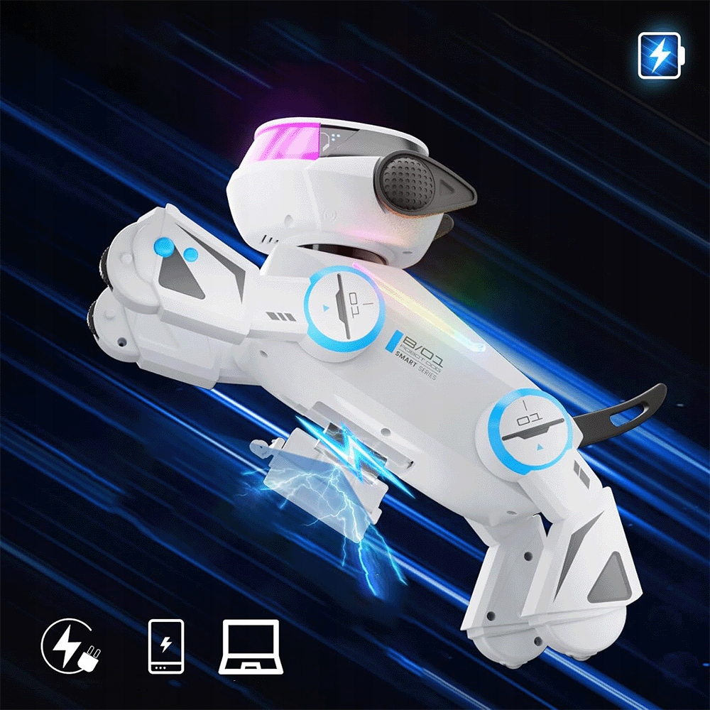 Футуристическая собака-робот, оснащенная разноцветными светодиодами по всему телу и глазам! 🌈 Свет автоматически включается при запуске и динамически меняется в зависимости от выбранного режима работы. Благодаря этому игрушка привлекает внимание как днем, так и ночью, создавая потрясающие визуальные впечатления.