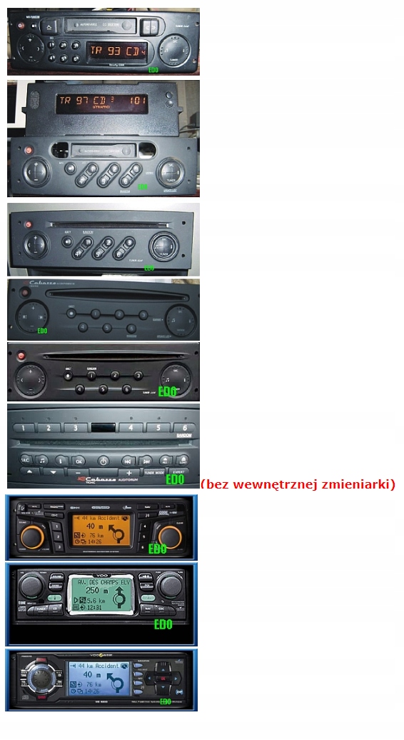 Renault RADIOSAT Classic, VDO Dayton MS 4300, Carminat TomTom (Tominat), Carminat Navigation & Communication с 3D-картографированием на DVD (ЧПУ), Carminat Navigation Monochrome, Carminat Bluetooth типа CD (CB CD)