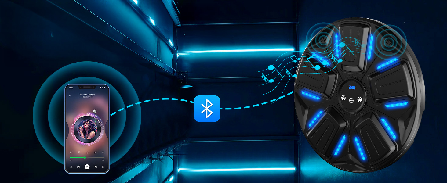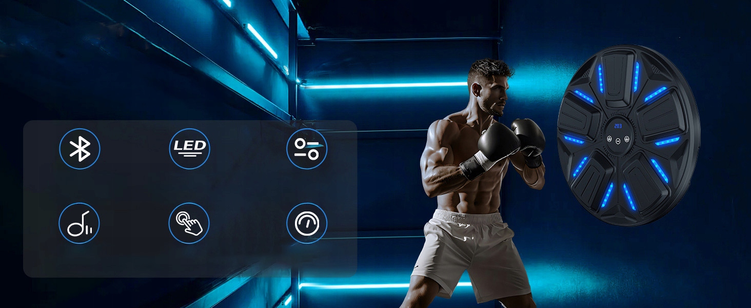 -Он использует инновационный интерактивный опыт и может синхронизировать музыку через соединение Bluetooth, что позволяет вам получать удовольствие от бокса в ритме ударов.