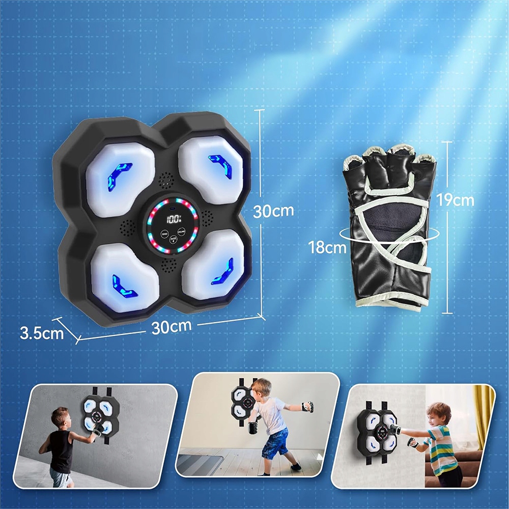 👊 Музыкальный боксерский аппарат для детей - электронный боксерский аппарат со светодиодным освещением и боксерски может полностью посвятить себя упражнениям во время упражнений. Он также поддерживает Bluetooth -соединение, благодаря которой дети могут выбрать свою любимую музыку во время обучения боксам. Живая музыка, сопровождающая в сочетании с прохладными огнями, делает детские боксерские игры еще более захватывающими.