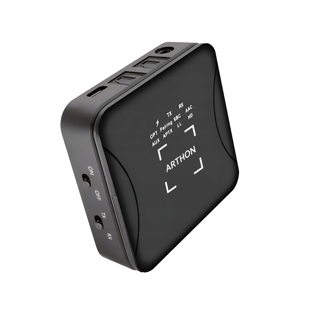 - TX (передатчик) позволяет передавать звук, например с телевизора, подключенного к устройству с помощью кабеля JACK 3,5 мм или Toslink, к динамикам или наушникам через сигнал Bluetooth, передаваемый передатчиком.