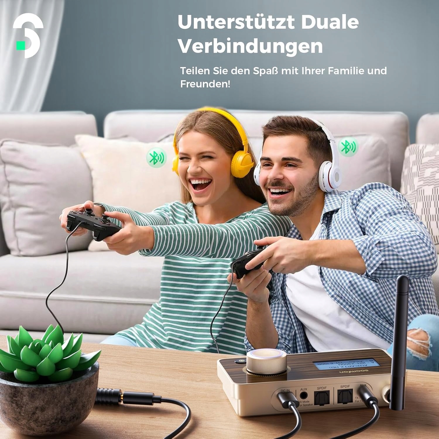 【Двойное соединение в режиме TX и RX】 Передатчик SOOMFON Bluetooth может одновременно соединять 2 беспроводных наушника или наушники в режиме TX. Благодаря двум подключениям вы можете наслаждаться музыкой и фильмами конфиденциально со своей семьей, друзьями или партнерами. Этот аудиоресивер Bluetooth может одновременно подключать 2 мобильных телефона/планшета, позволять стереосистеме воспроизводить музыкальный список, а также обеспечивать функцию Bluetooth для старого динамика.
