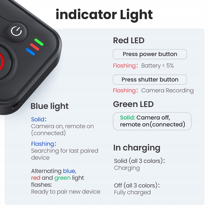 【Множество функций】Беспроводной пульт дистанционного управления имеет несколько функциональных режимов, которые можно использовать для включения/выключения питания, переключения режимов, начала/остановки записи и других функций с помощью трех кнопок, со стабильным соединением, простым и удобным управлением, компактным размером и удобством переноски.