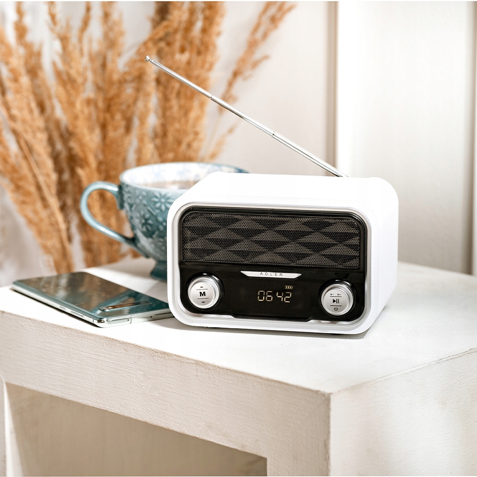 Что сегодня отличает современную Bluetooth-радиостанцию AD 1185, так это, прежде всего, ее функциональность. Помимо FM-радио, в котором мы можем хранить до 50 станций, мы также можем воспроизводить музыку с внешних источников, таких как компьютер, смартфон или планшет. Воспроизведение с SD-карты, USB и MP3 позволяет удобно слушать песни любимых исполнителей, групп, а также подкасты и записи практически в любых условиях. Это большое удобство, особенно для людей, собирающих записи на различных носителях. Аккумулятор емкостью 1800 мАч позволит слушать ресивер несколько часов.