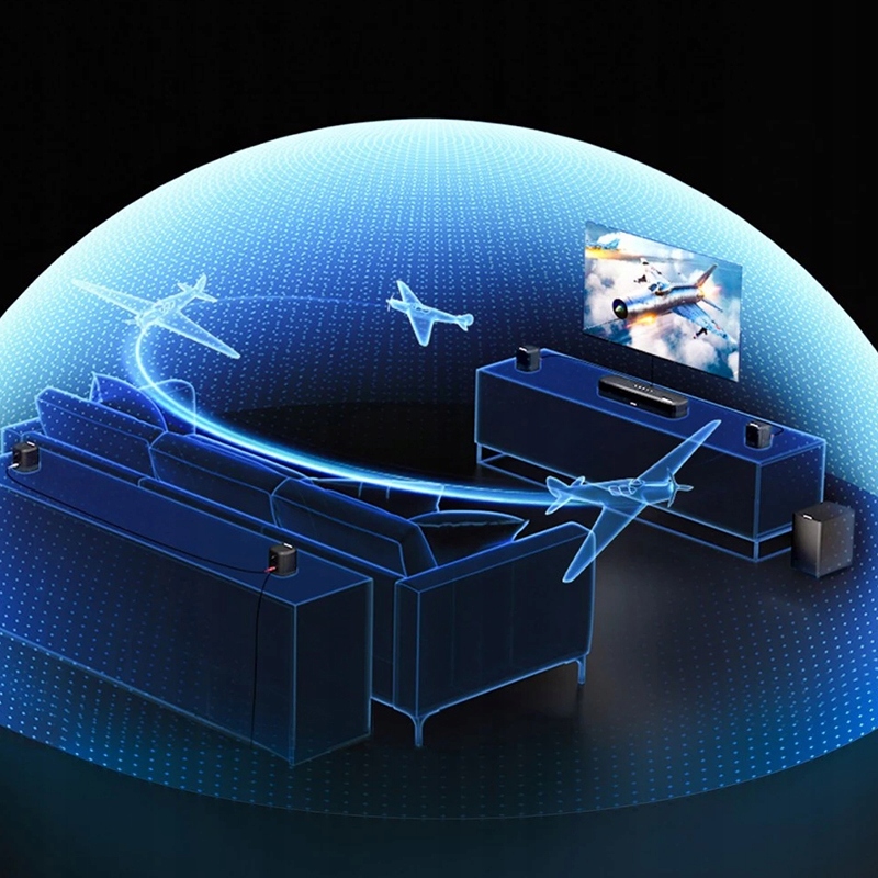 - Драйверы: Основная панель: 2 дюйма × 3; Объемный звук: 2 дюйма × 4; Сабвуфер: 4 дюйма×1