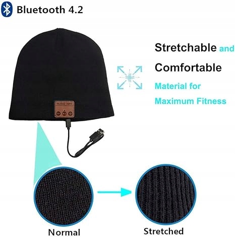 Эта беспроводная музыкальная шляпа очень проста и быстро сочетается с 2 смартфонами, планшетами и другими музыкальными устройствами, поддерживающими технологию Bluetooth, диапазоном до 10 метров), набор наушников Stereo Bluetooth обеспечивает отличное качество звука, стиль и комфорт.
