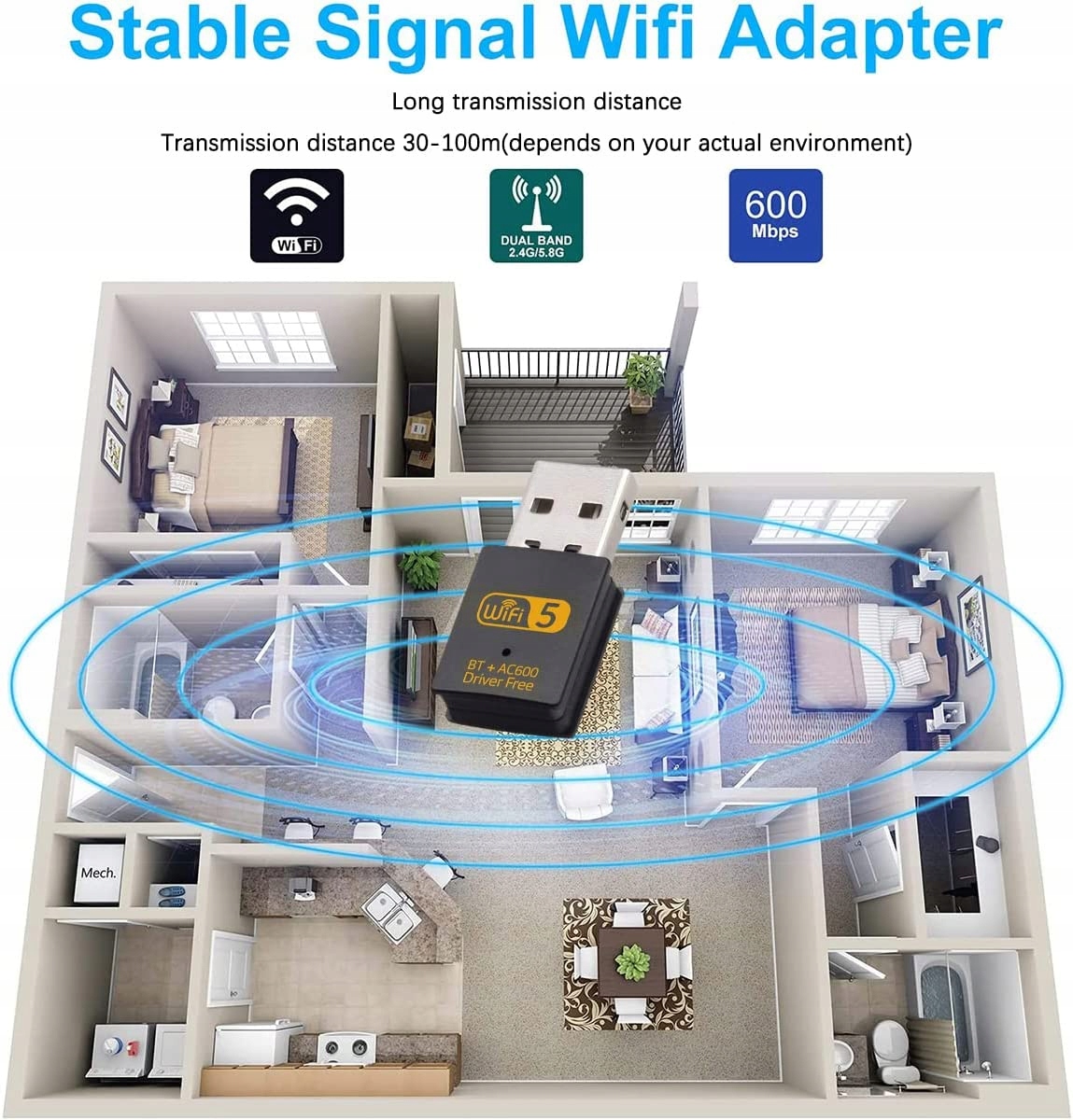 USB-АДАПТЕР BLUETOOTH WIFI, 600 Мбит/с