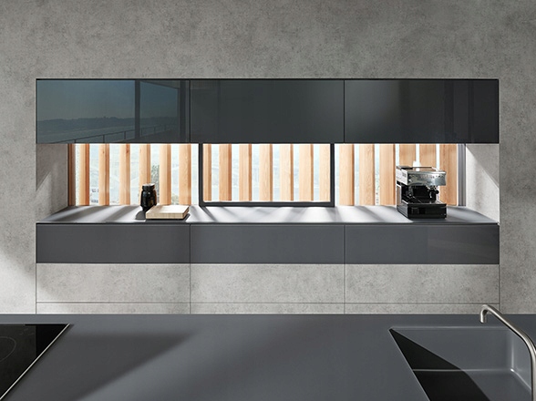 Горизонтальные зазоры определяют внешний вид и не должны прерываться слишком большим количеством вертикальных зазоров. Благодаря системам AVENTOS мы сохраним одинаковый дизайн верхних и нижних шкафов.