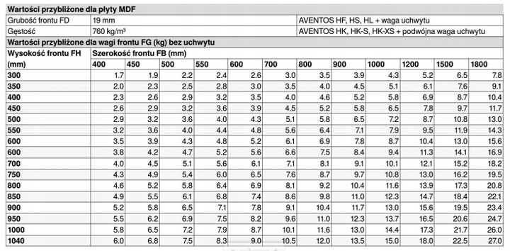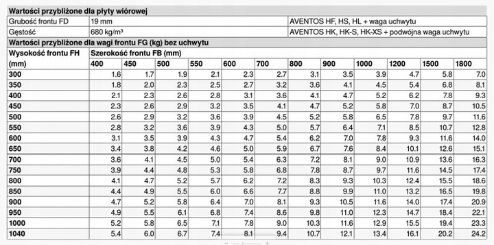 Для выбора подходящего привода необходимо знать высоту корпуса КН и вес передняя часть, включая ручку. Приблизительный вес передней части можно рассчитать по таблицам ниже, а затем умножить на высоту кузова, указанную в мм. Полученное значение будет соответствовать коэффициенту мощности LF, который должен иметь привод.