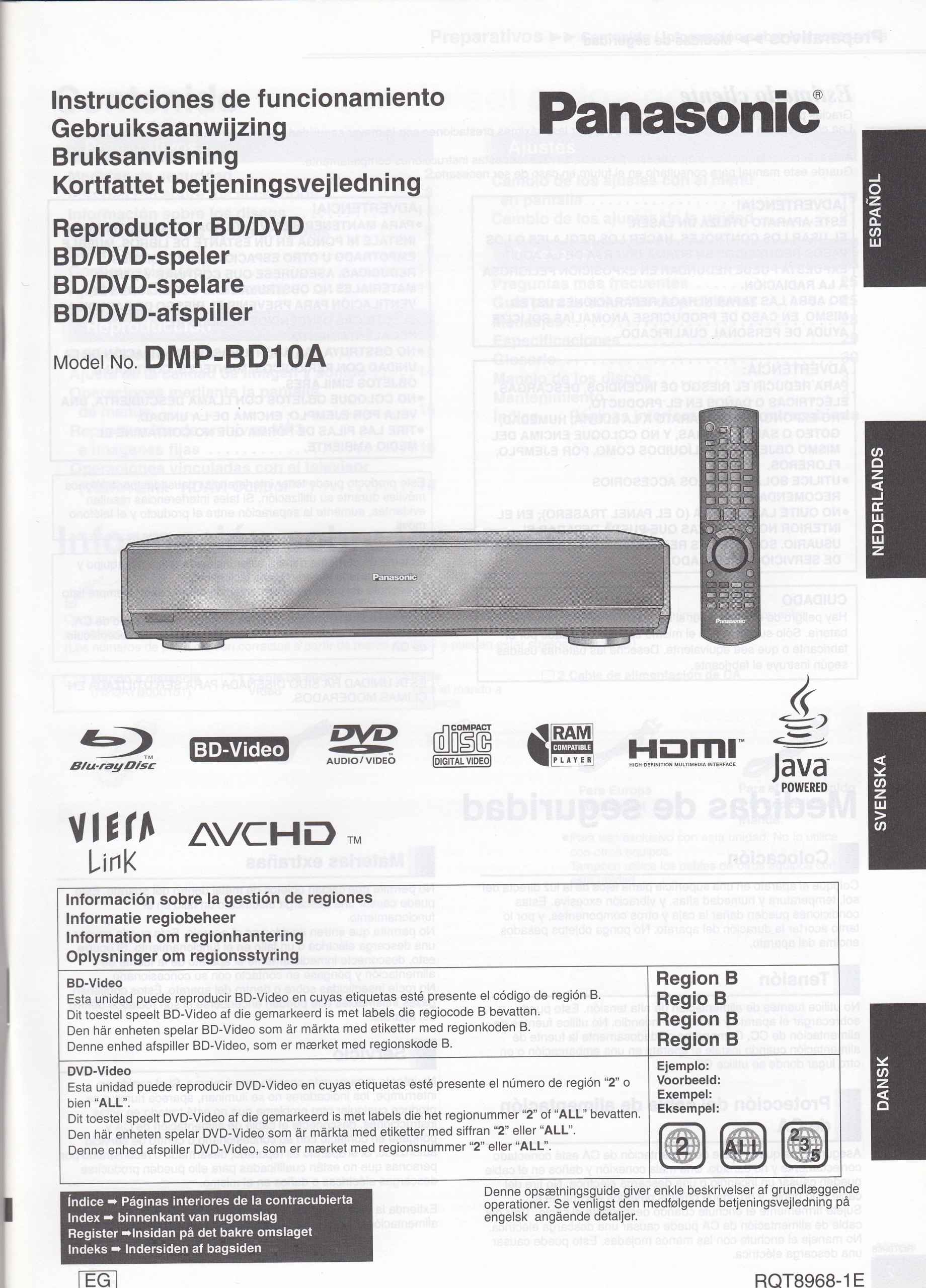 Заказывая «BLURAY PANASONIC DMP-BD10» данное изделие из «Инструкции и каталоги» вы можете быть уверены, что после оформления заказа, доставки в Украину, вы получите именно то, что заказывали, в оговоренные сроки и европейского качества.