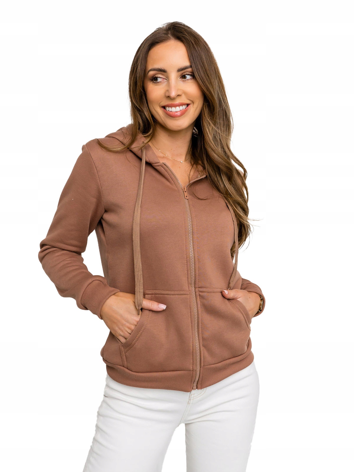 BLUZA DAMSKA ROZPINANA Z KAPTUREM BEŻOWA W03B DENLEY_S