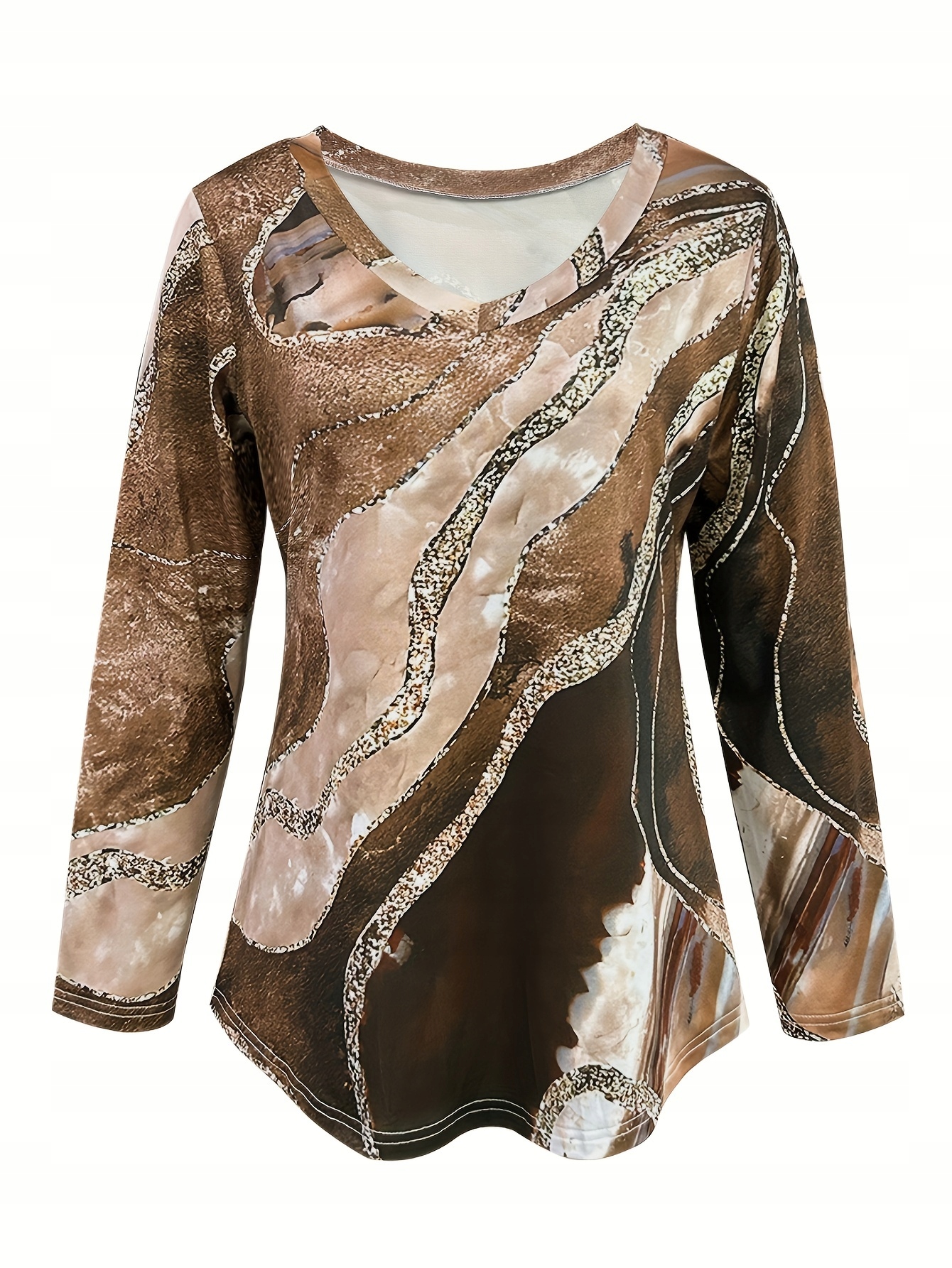 Украсьте свой стиль нашей женской блузкой с длинными рукавами и уникальным принтом.