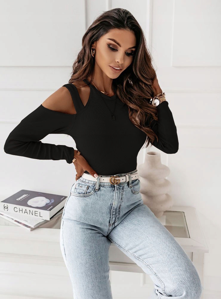 Познакомьтесь с нашей НОВИНКОЙ! Наше следующее предложение – приталенная блузка в рубчик с вырезами на плечах. Изготовлен из приятного материала, он обеспечит комфорт при ношении. Имеет круглый вырез. Вырезы на рукавах добавят дополнительный характер. Выбирайте нашу модель и создайте свой неповторимый стиль.