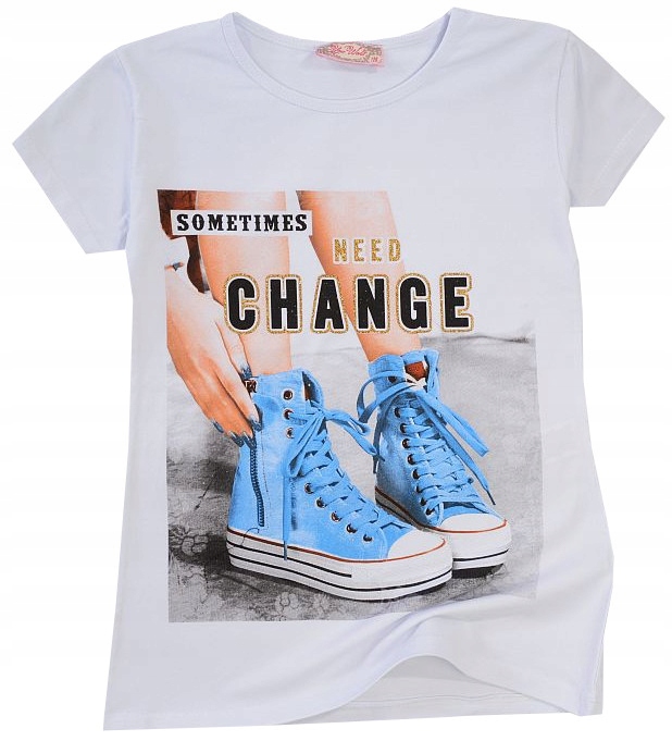 БЛУЗКА БЕЛАЯ ФУТБОЛКА КРОССОВКИ С ПРИНТОМ 128 J191D