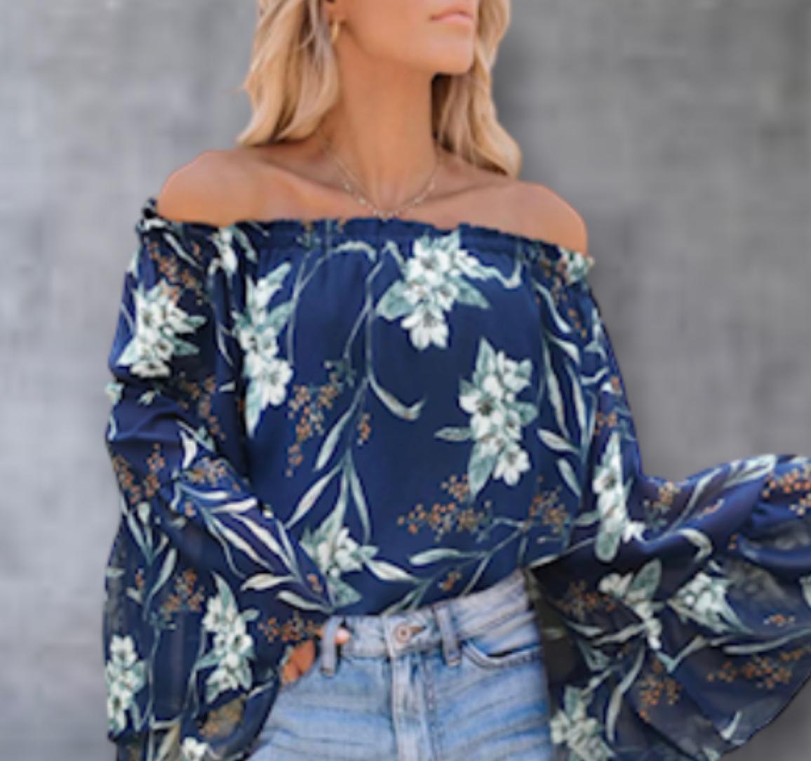 BLUZKA DAMSKA ELEGANCKA HISZPANKA NIEBIESKA