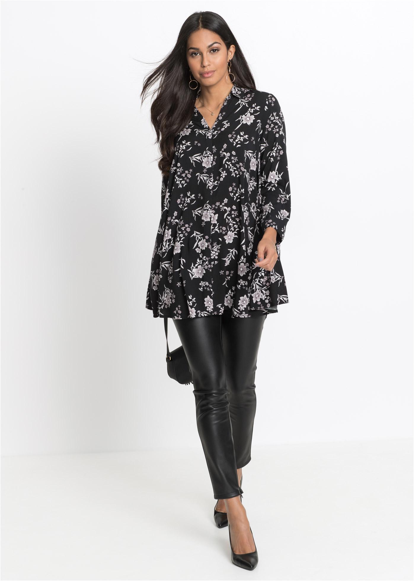 BLUZKA DŁUGA TUNIKOWA CZARNA W KWIATY Z WISKOZY 3K3C21 Bonprix 38