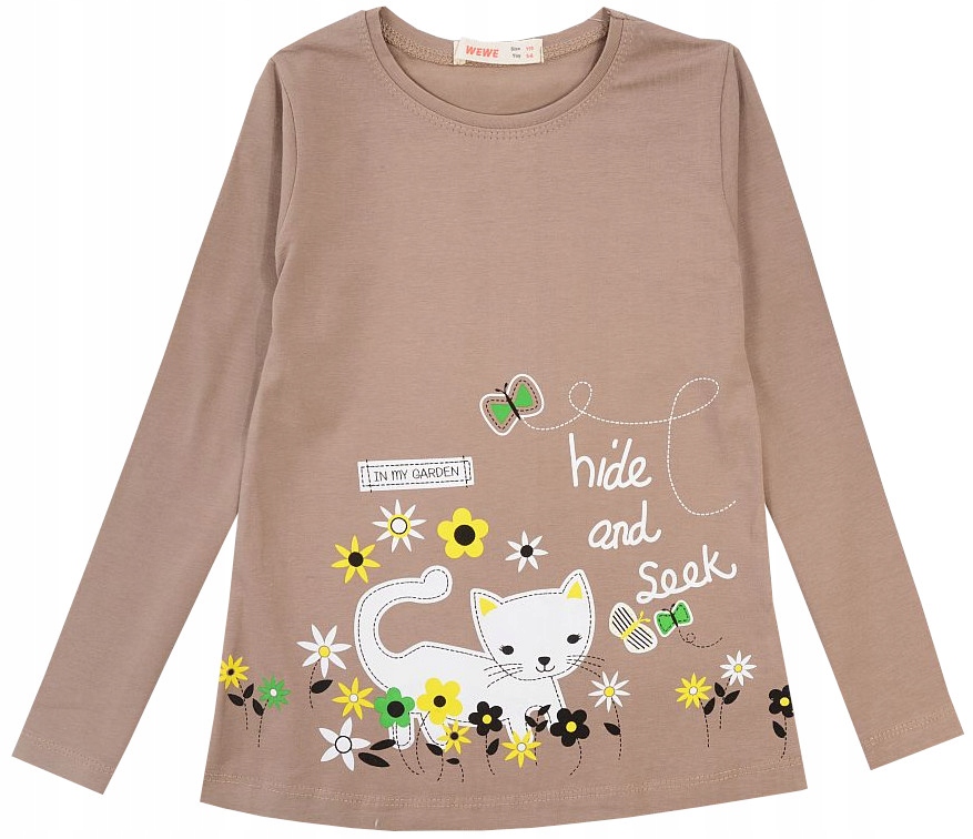 BLUZKA DŁUGI RĘKAW kotek w ogrodzie brąz 92 H207A