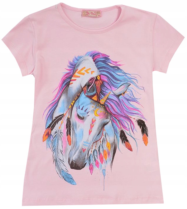 БЛУЗА ФУТБОЛКА ХЛОПКОВАЯ ЛОШАДЬ БОХО розовая 140 H300N