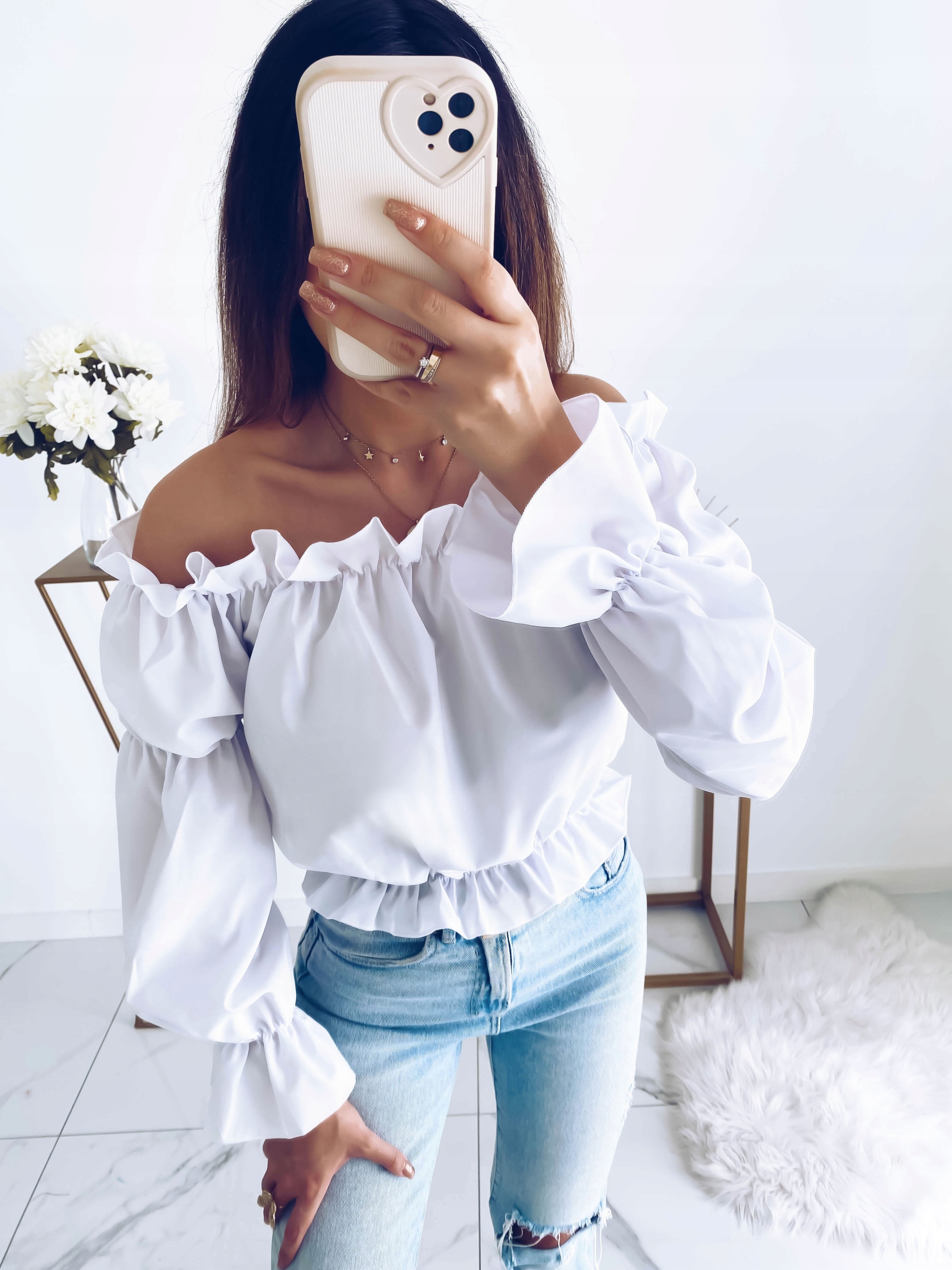 ЖЕНСКАЯ ТОП-БЛУЗКА.МОДНАЯ ИСПАНСКАЯ БЛУЗКА, Оборки, ЦВЕТА