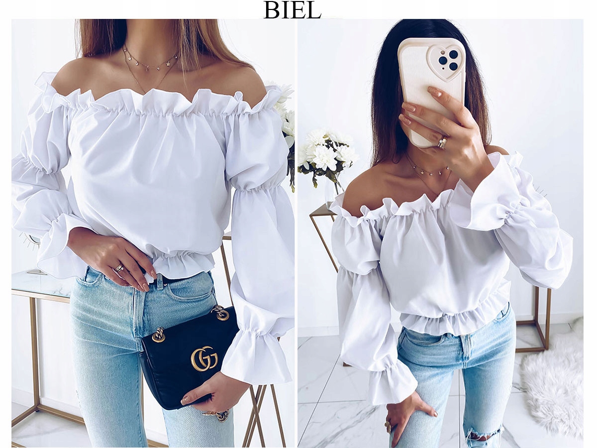 Наше следующее уникальное предложение — испанское платье с открытыми плечами. Идеально подходит для предстоящих теплых дней. Невероятно чувственная модель, которая позволит вам почувствовать себя еще более женственной. Он идеально сочетается с юбкой, но его можно сочетать и с джинсами. Пышные рукава и модные рюши придадут образу дополнительный характер. Выберите свой идеальный цвет и создайте стиль с нашей моделью.