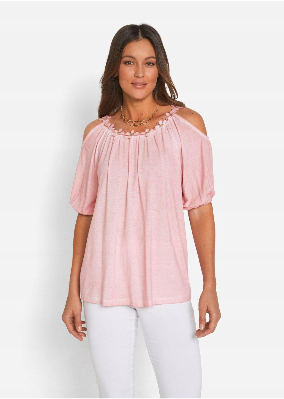 БЛУЗКА РОЖЕВА З КВІТАМИ 1Т4Е17 бпк 40