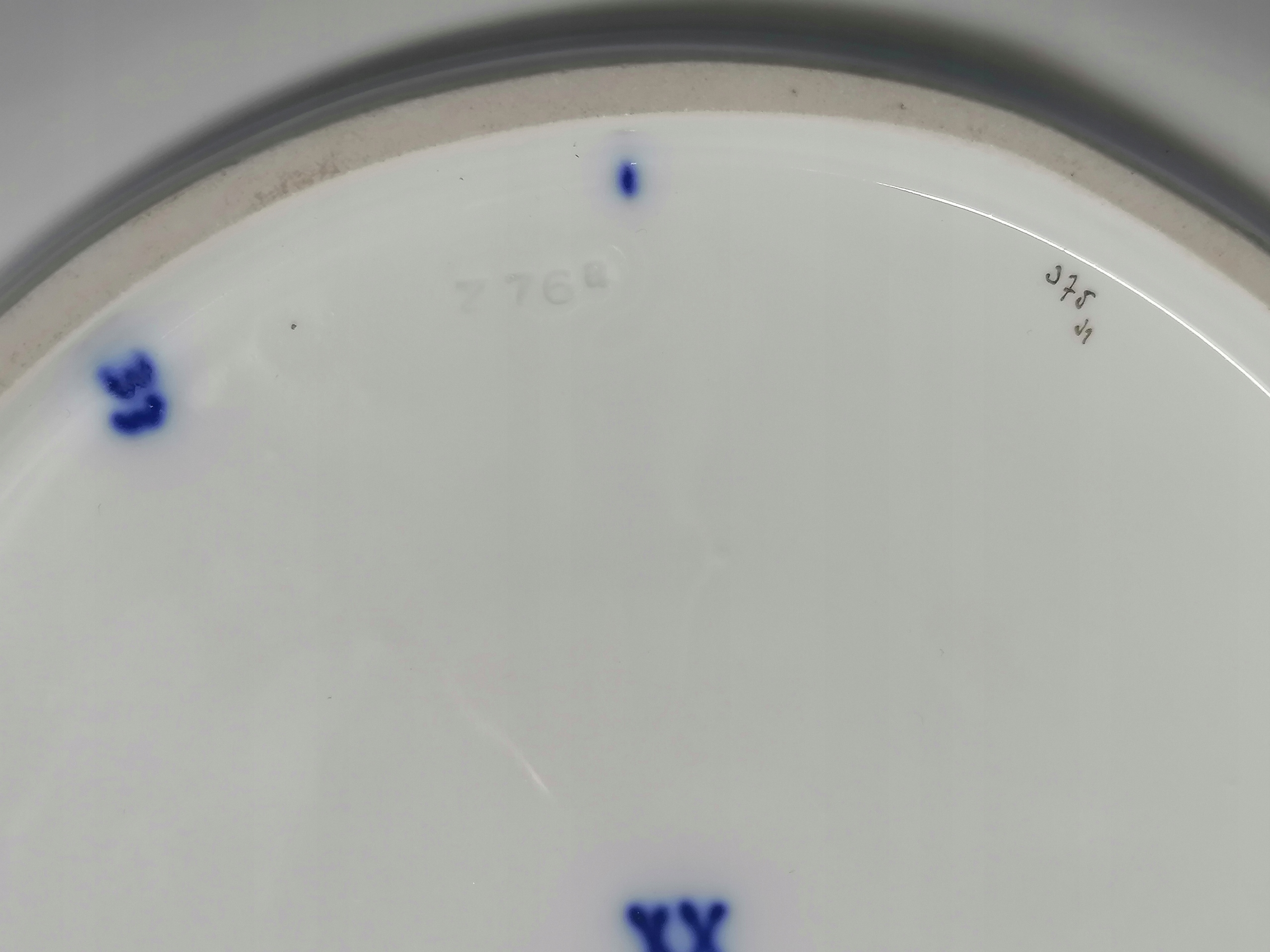 использовались в годы 1953 - 1957 год, подглазурная, кобальтовые шпаги с двумя делениями (прорезями), указывающими на две ошибки/
