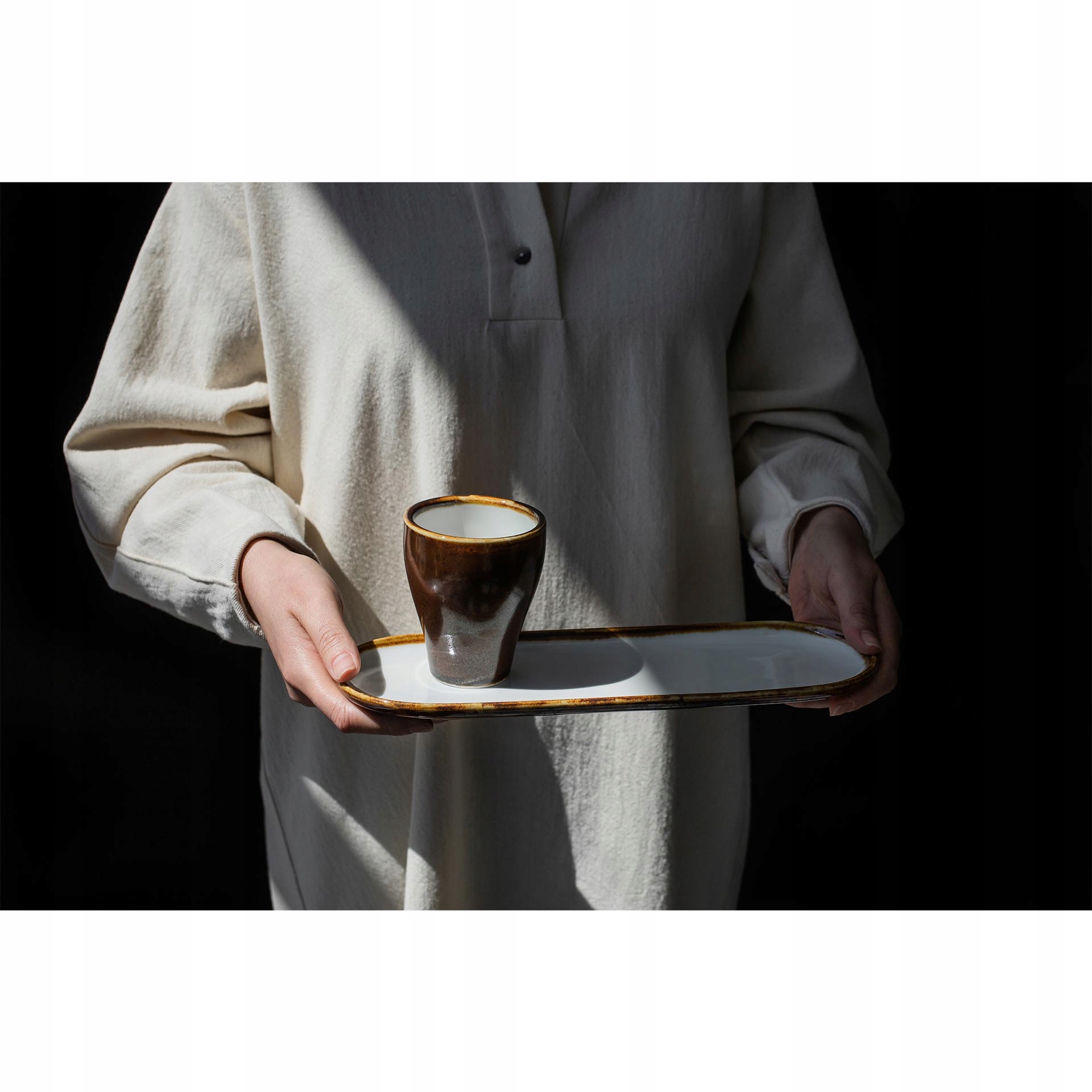 Сочетание двух контрастных цветов и глянцевой глазури создает восхитительный эффект. Прочная форма посуды и солидная толщина фарфора придают этой коллекции деревенский характер. Дополнительный эффект обесцвечивания и неравномерности распределения цвета на внешней поверхности посуды был достигнут благодаря особому методу использования реактивной глазури. В результате на поверхности чашек, пиал, тарелок и тарелок создаются нестандартные украшения. Они выглядят так, как будто созданы естественным путем. Внешний коричнево-ржавый цвет мягко проникает во внутреннюю часть сосуда и тонко сочетается с оттенком «ледяного» белого. Этот удивительный эффект представляет собой сочетание современности и отсылки к традиционным формам сосудов. Художественное состаривание фарфора в настоящее время является очень модной тенденцией в декоре ресторана или столовой.