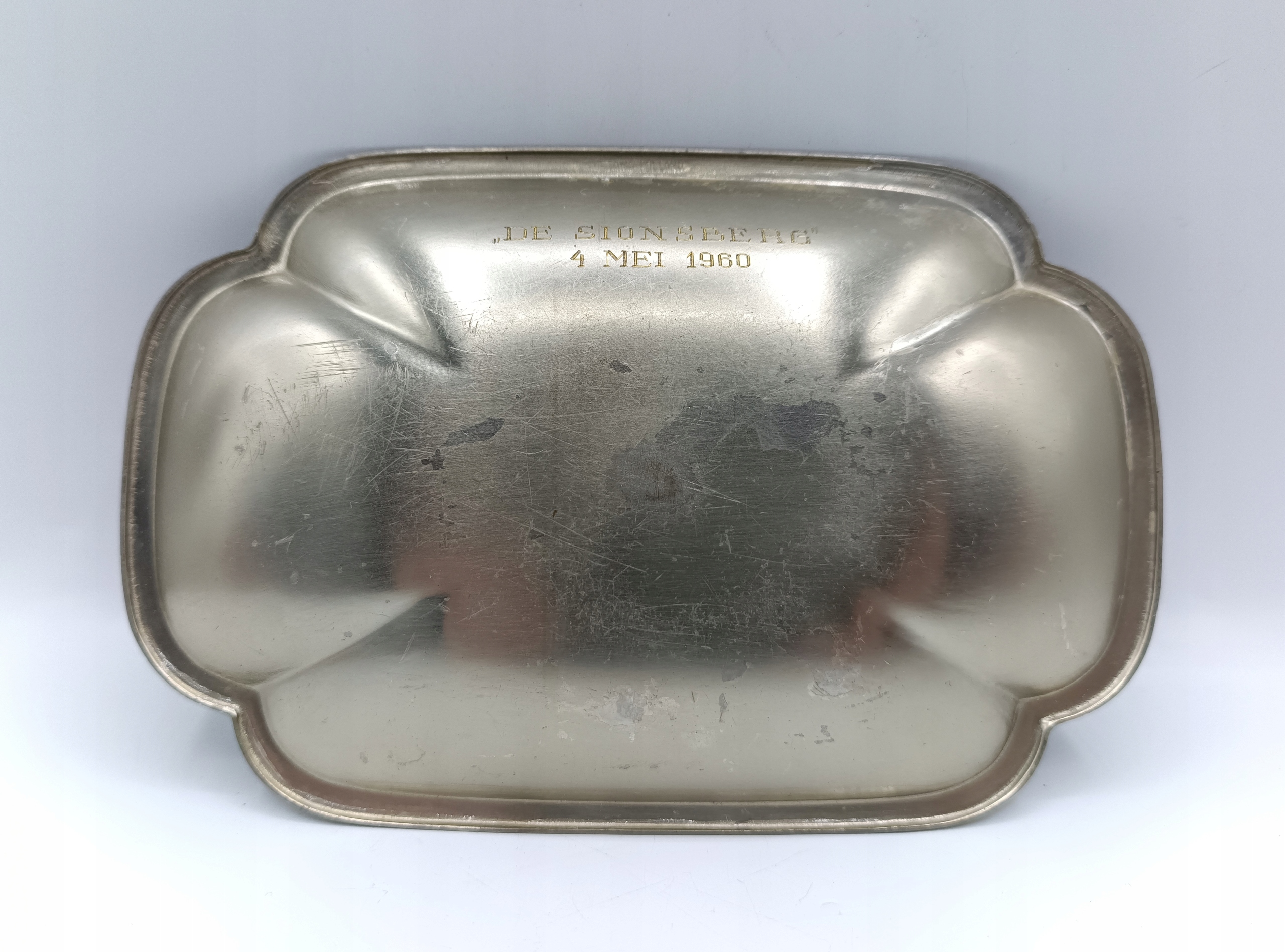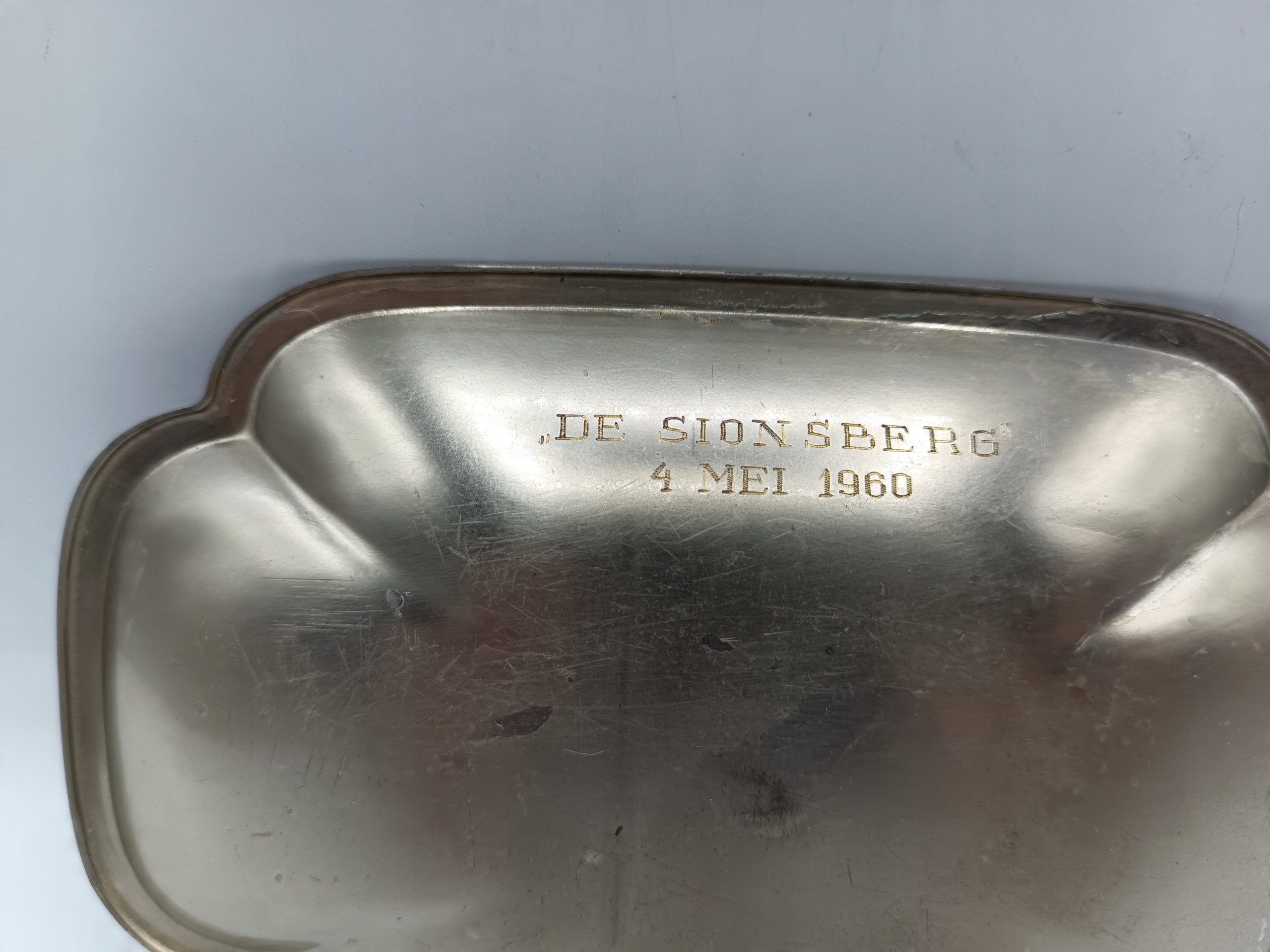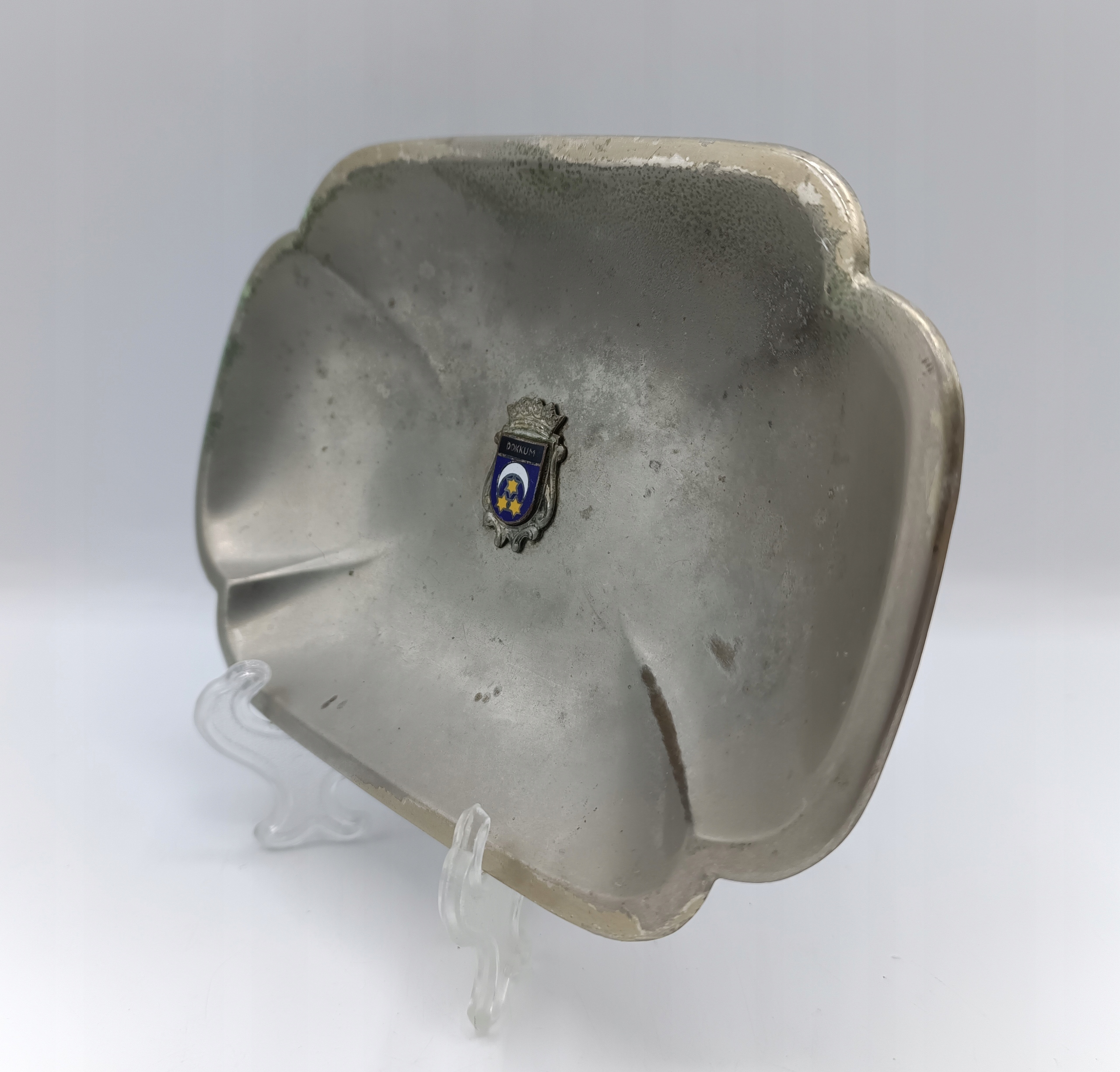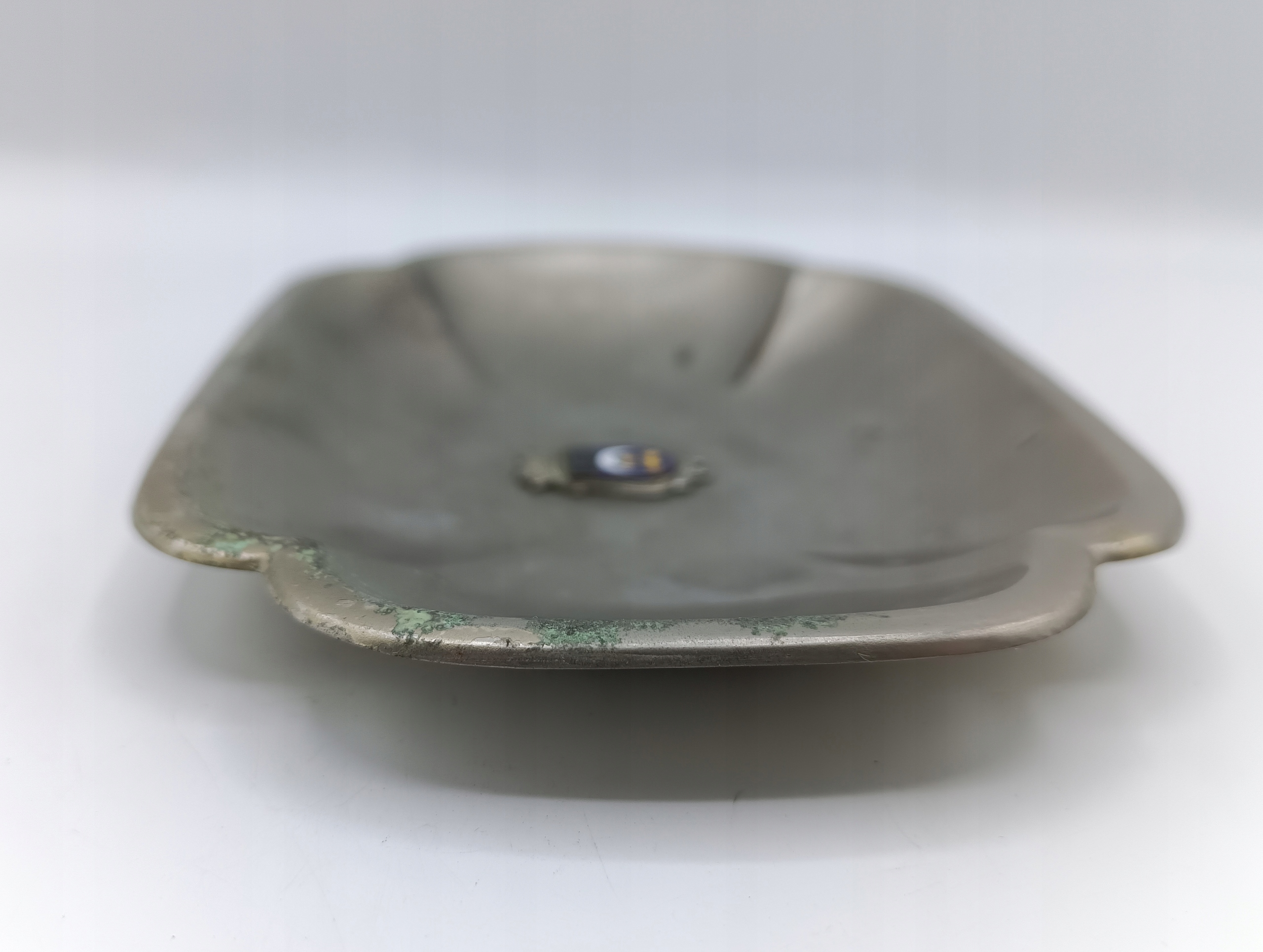 Старое блюдо с гербом - подписано - посеребренное, 16,5 см