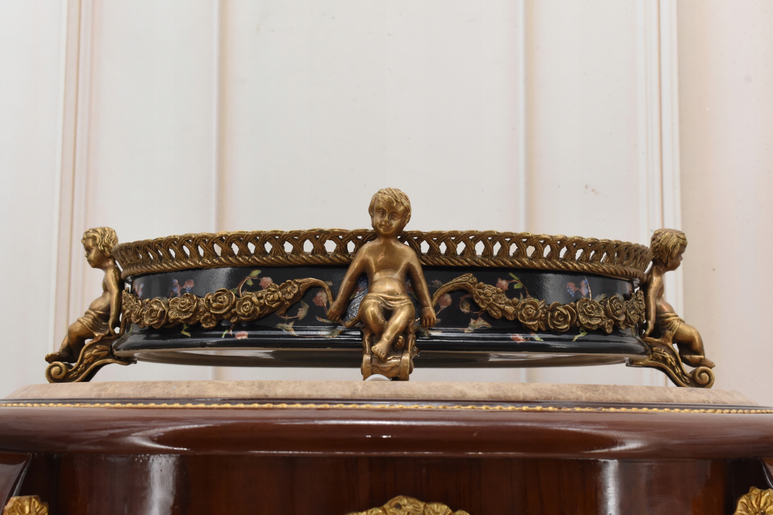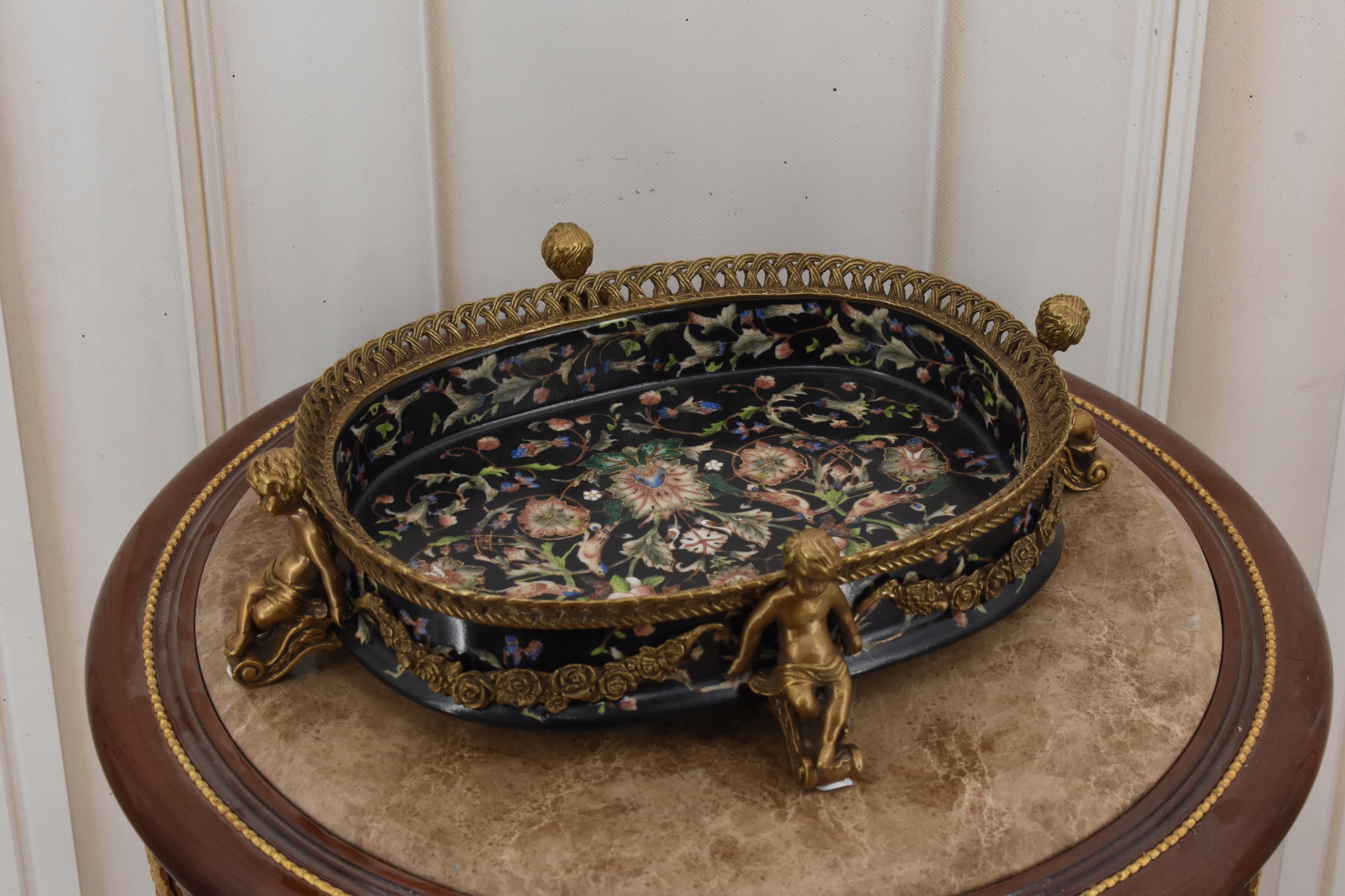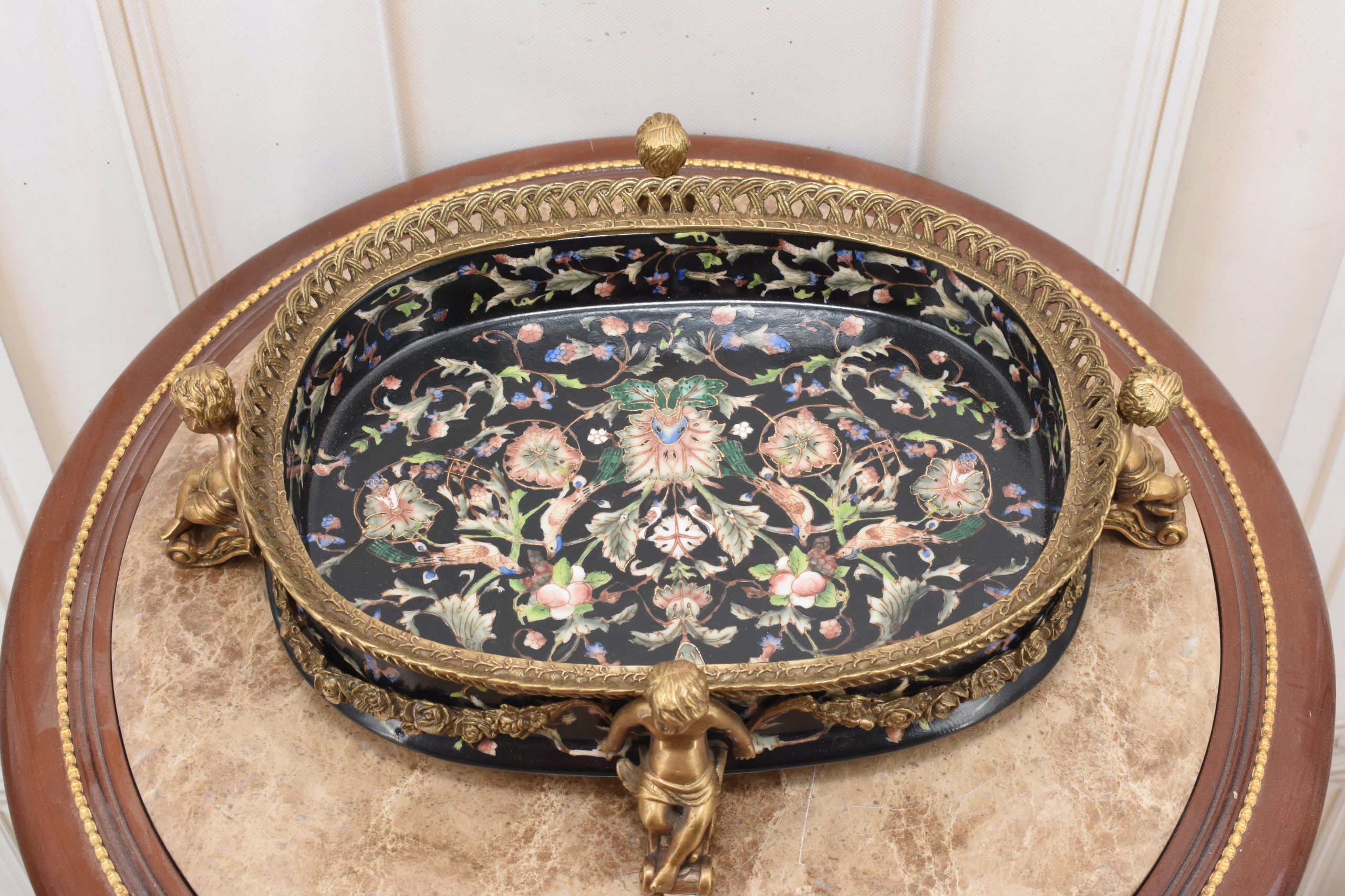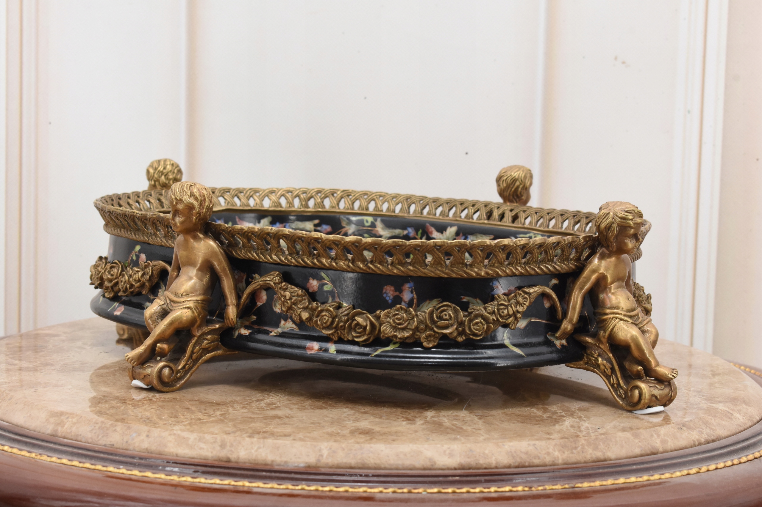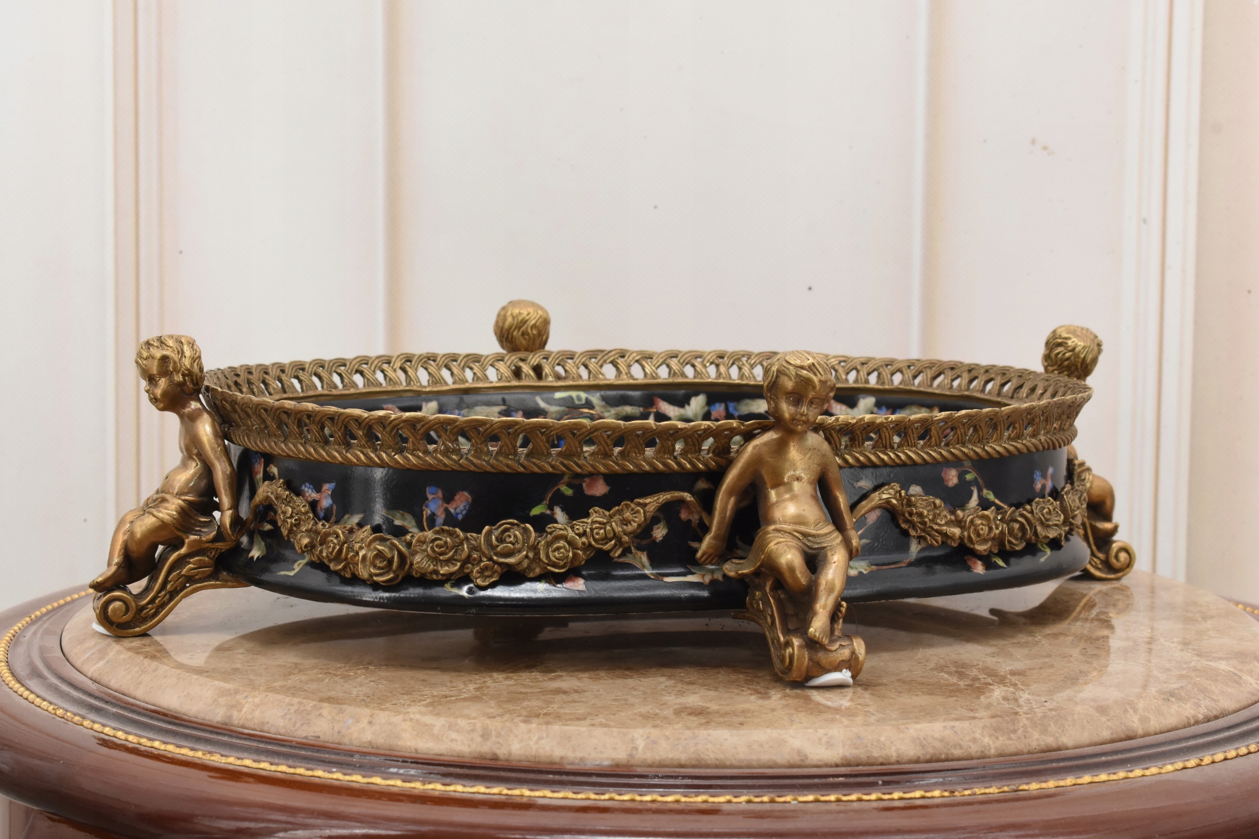 Черное фарфоровое блюдо с 4 ангелами - фарфор + бронзовый ангел-амур - знак