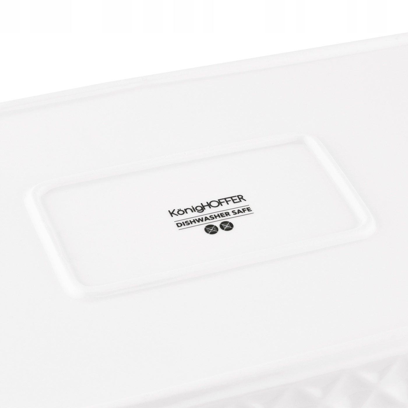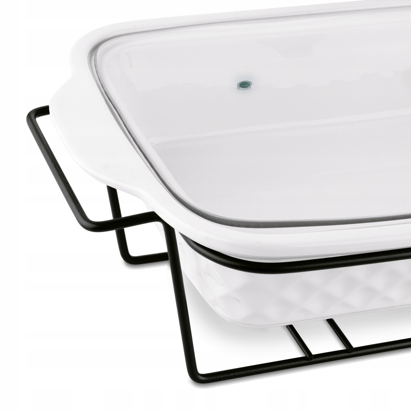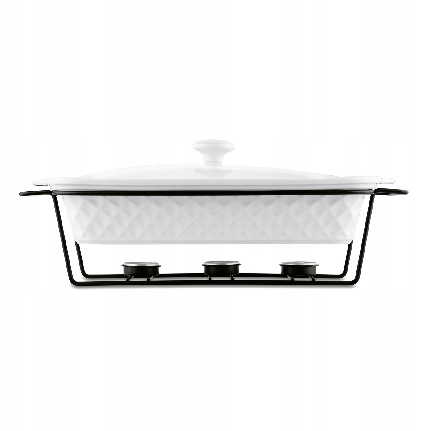 Белый сосуд на алмазном обогревателе Konight 2,9 л является прямоугольным и фарфором. Его мощность будет соответствовать семейным блюдам. Вы можете подавать домашние блюда на столе при каждой возможности. Более того, вы заставите еду подавать долгое время. Это возможно путем размещения свечей с шипами в нужных местах прикрепленной металлической порошковой стойки в черном. Вы можете безопасно вымыть фарфоровое блюдо для подачи блюд в посудомоечной машине. Набор также включает в себя стеклянную крышку с керамической ручкой. Это поможет вам в эффективном нагреве таких поданных ингредиентов, соусов и ужина. Кроме того, вы можете стабильной пищи на столе, не беспокоясь о повреждении столешницы. Вы также будете безопасно и комфортно переместить все это. Просто помните, что алмазное сосуд не должен подвергаться внезапным изменениям температуры. Его максимальная тепловая прочность - 140 Цельсия.
