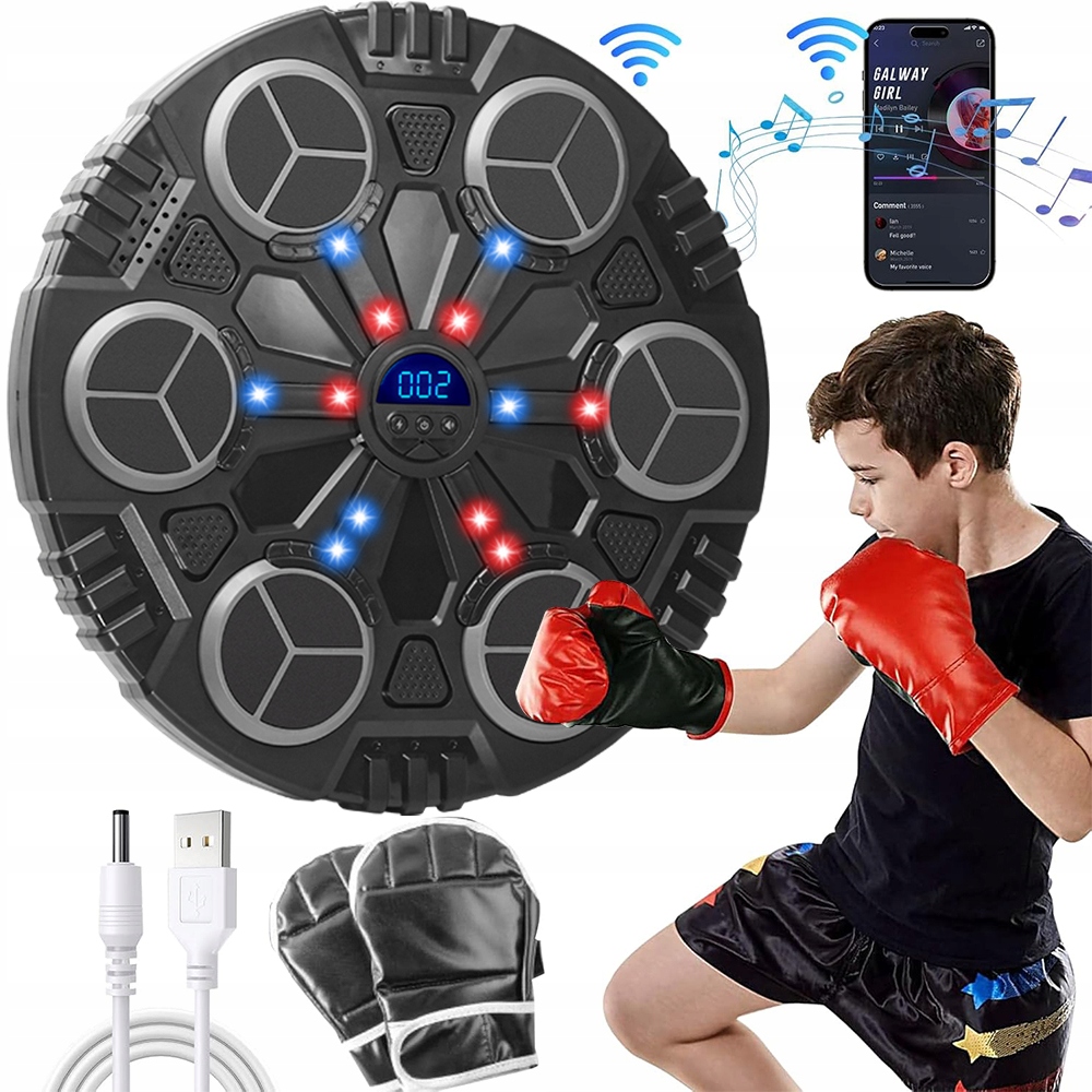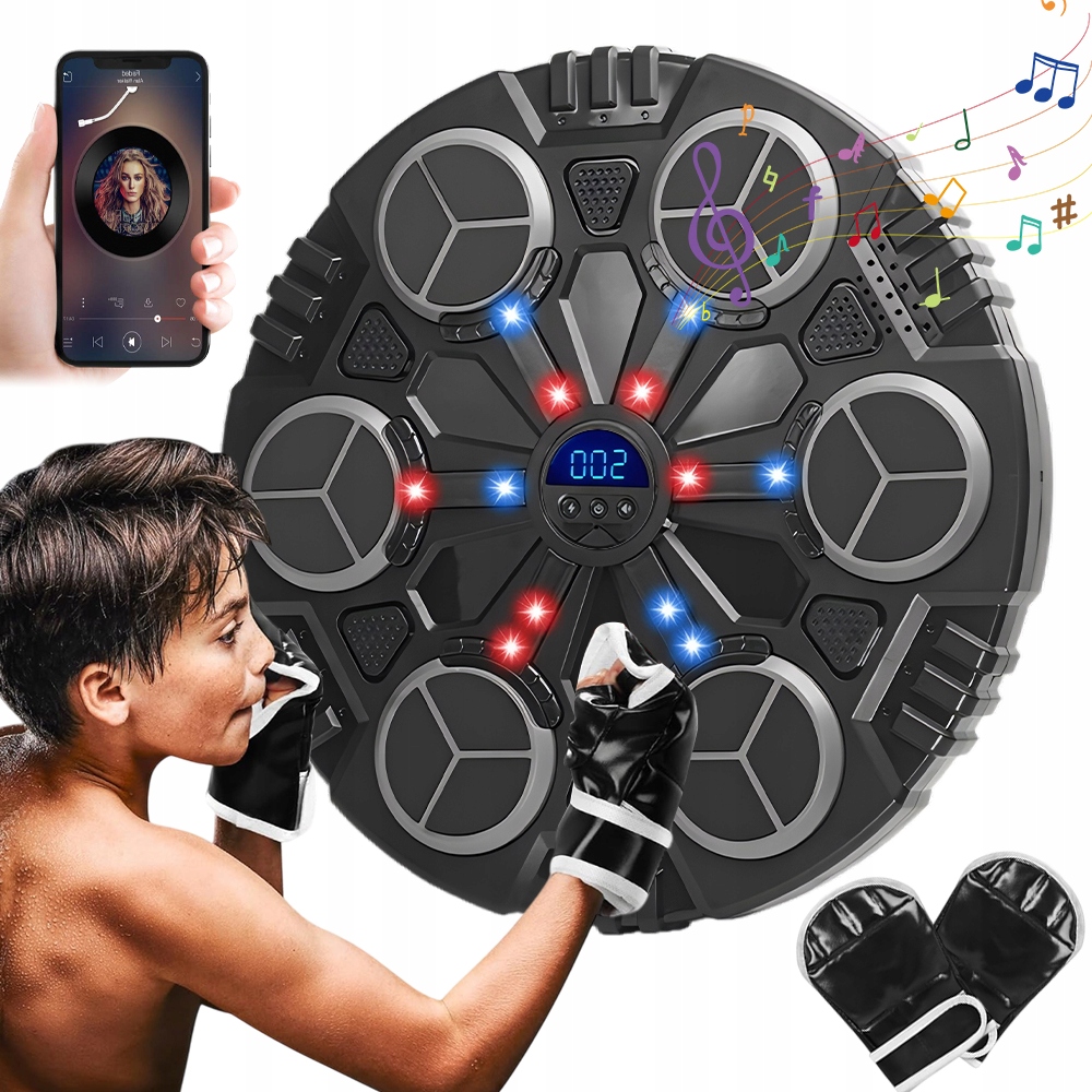 - Включите умный музыкальный боксерский аппарат, динамически подключившись к Bluetooth с помощью мобильного телефона, вы можете играть в свою любимую музыку, вы можете следовать ритму музыки с помощью вспыхивания огней и движений, , который предоставит вам идеальный опыт обучения.