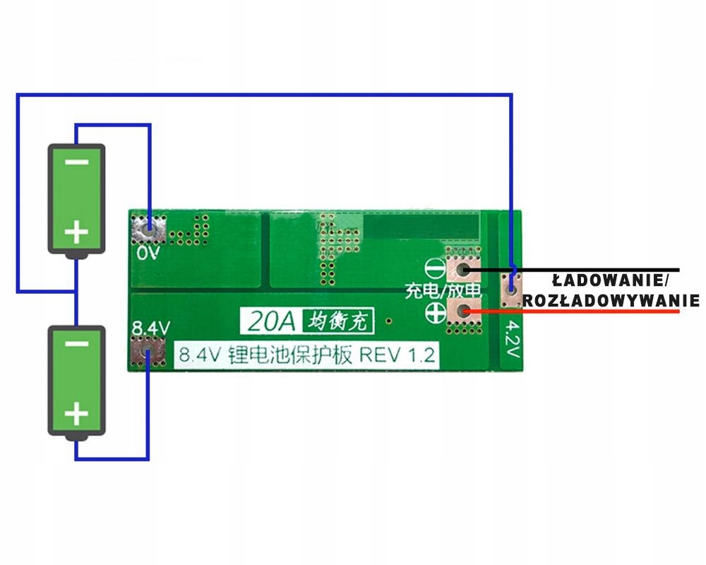 Модуль BMS 2S для управления зарядкой и разрядкой литий-ионных аккумуляторов, выдерживающий ток 20А в непрерывном режиме. Это гарантирует, что напряжение элемента не упадет ниже 2,5–3 В и не будет заряжаться выше 4,25–4,35 В. Имеет защиту от короткого замыкания. Эта модель подходит для электроинструментов с высоким энергопотреблением, например, отверток. Не забывайте использовать его в устройствах с пусковым током менее 25 А и мощностью менее 50 Вт. Для успешного запуска шуруповерта необходимо использовать эффективные аккумуляторы типа SONY VTC4, их вы также найдете в нашем предложении