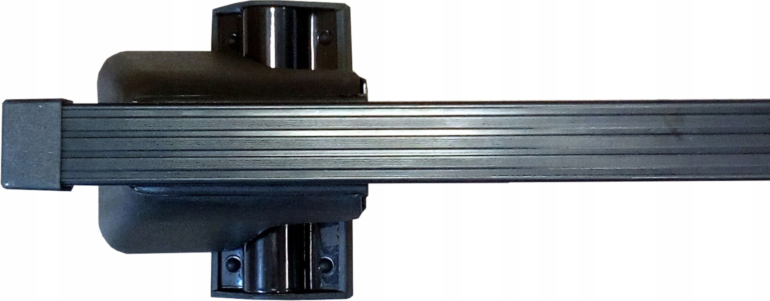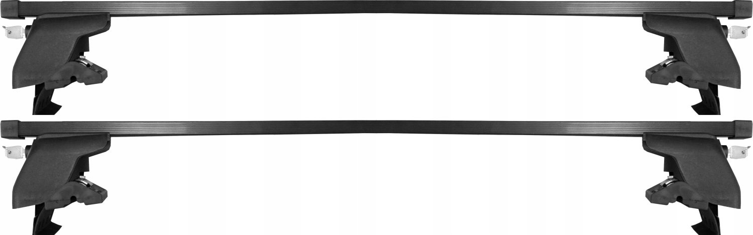 Представленный багажник состоит из прочных опорных ножек, изготовленных из металла с резиновыми покрытиями, обеспечивающих герметичность и долговечность крепления к крыше (через ее край) автомобиля, и двух стальных балок (в черное ПВХ-покрытие) с прямоугольным сечением 32х20мм. Весь комплект выполнен в универсальном черном цвете. Для безопасности в комплект входят четыре противокражные чехла с ключевыми замками из пластика.