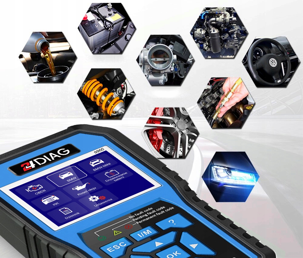 24DIAG S960, помимо полного обслуживания автомобилей BMW, MINI, Rolls-Royce, также поддерживает все автомобили, соответствующие стандарту OBDII/EOBD
