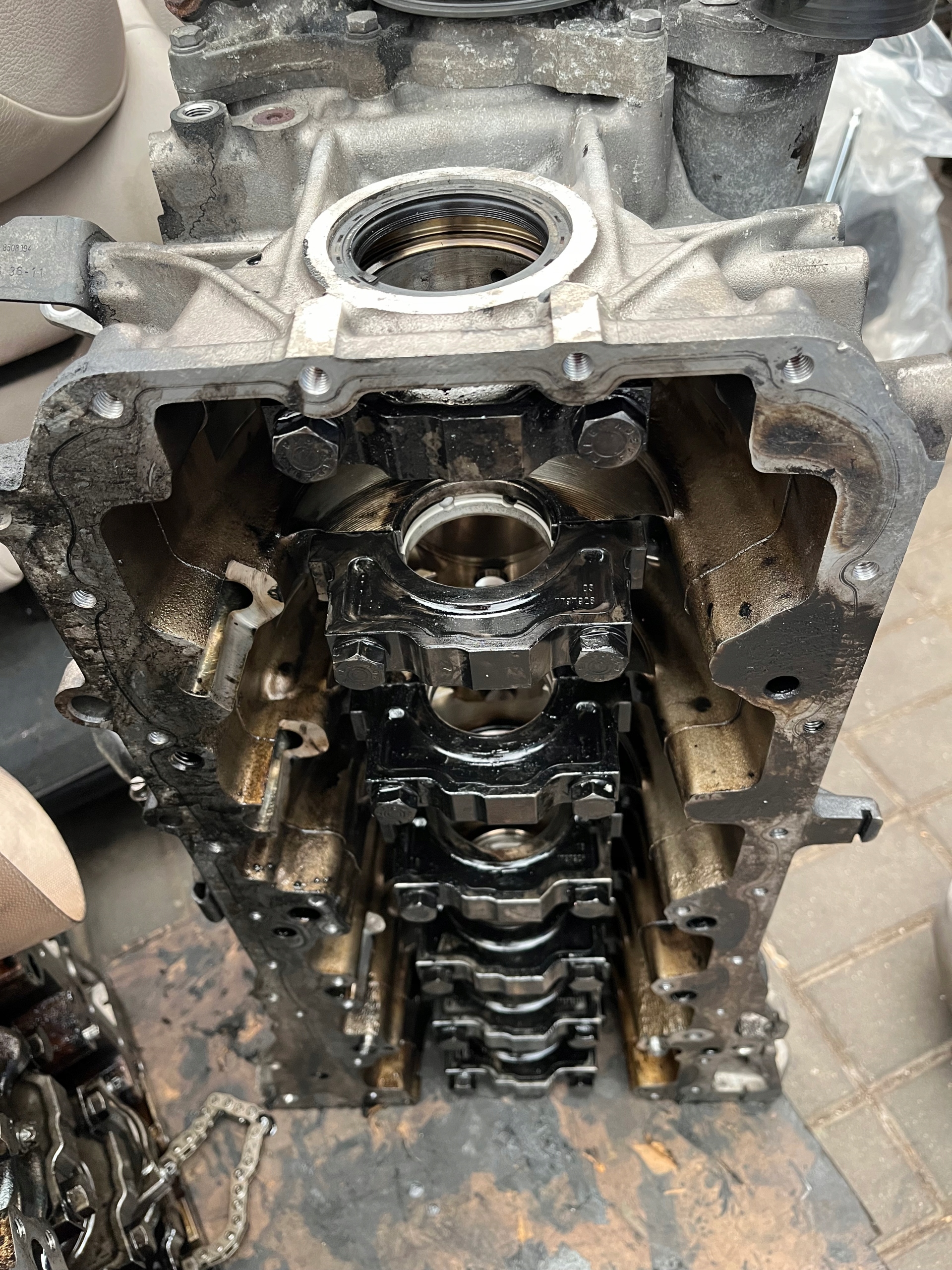 Блок двигателя N57D30B после протирания одной коренной втулки