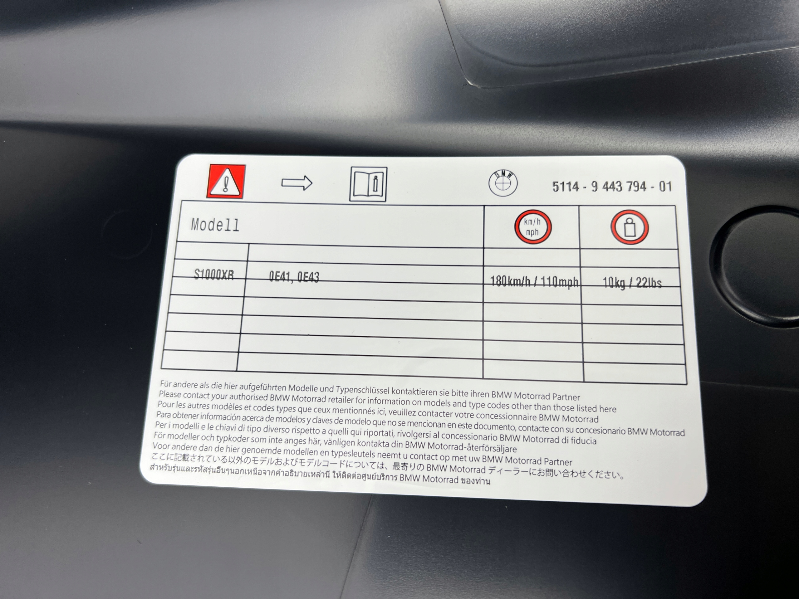 BMW S1000XR S 1000 xr Vario Side Bunk Left Original OEM