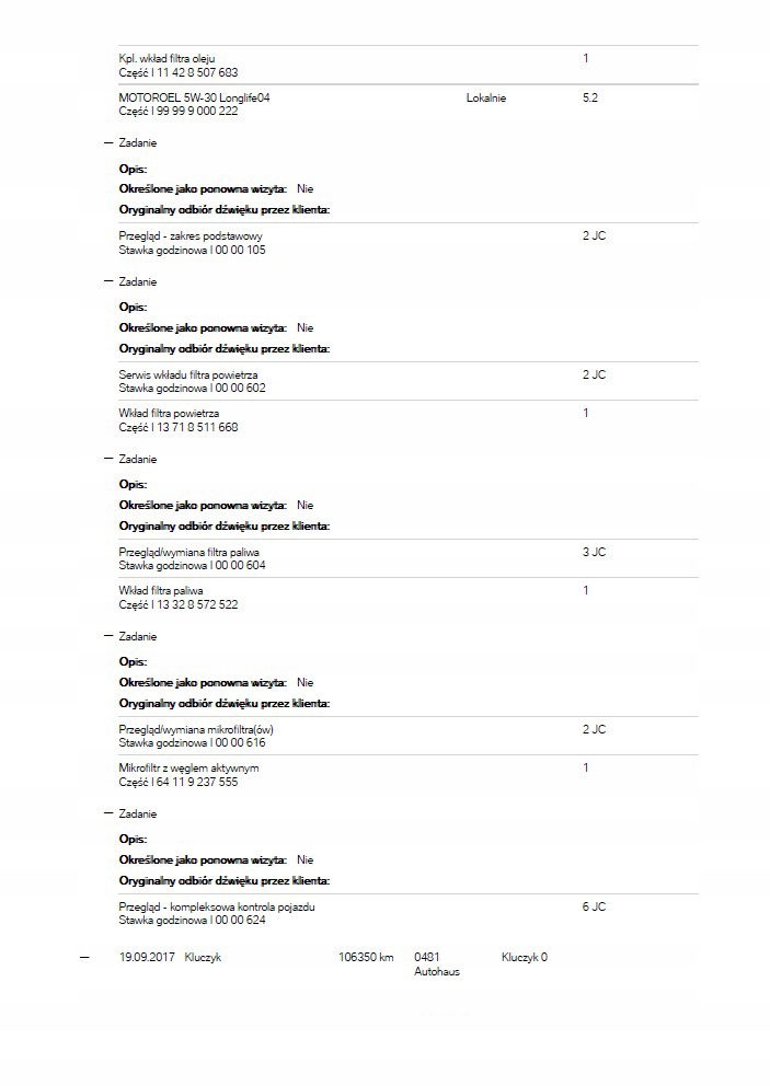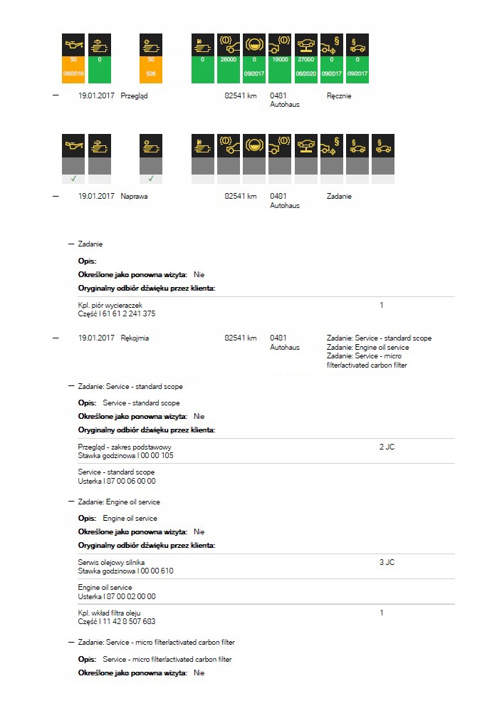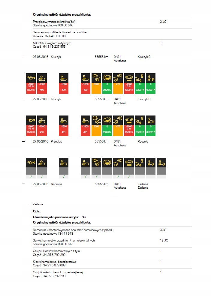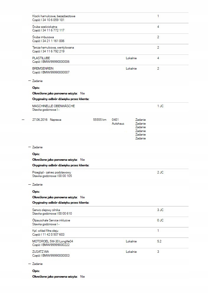 BMW VIN Historia Serwisowa Naprawy Przebiegi Raport Ekspresowy ASO PDF 7/7
