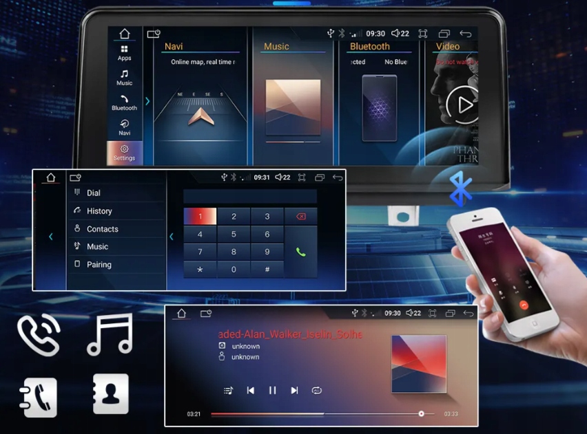 Просто подключите экран Android к телефону, чтобы использовать навигацию, совершать звонки, отправлять и получать сообщения, наслаждаться музыкой и т. д. Более разумный, безопасный и приятный способ использовать устройство iPhone/Android в автомобиле. Им можно управлять с помощью сенсорного экрана, ручки iDrive или интеллектуального голосового помощника.
