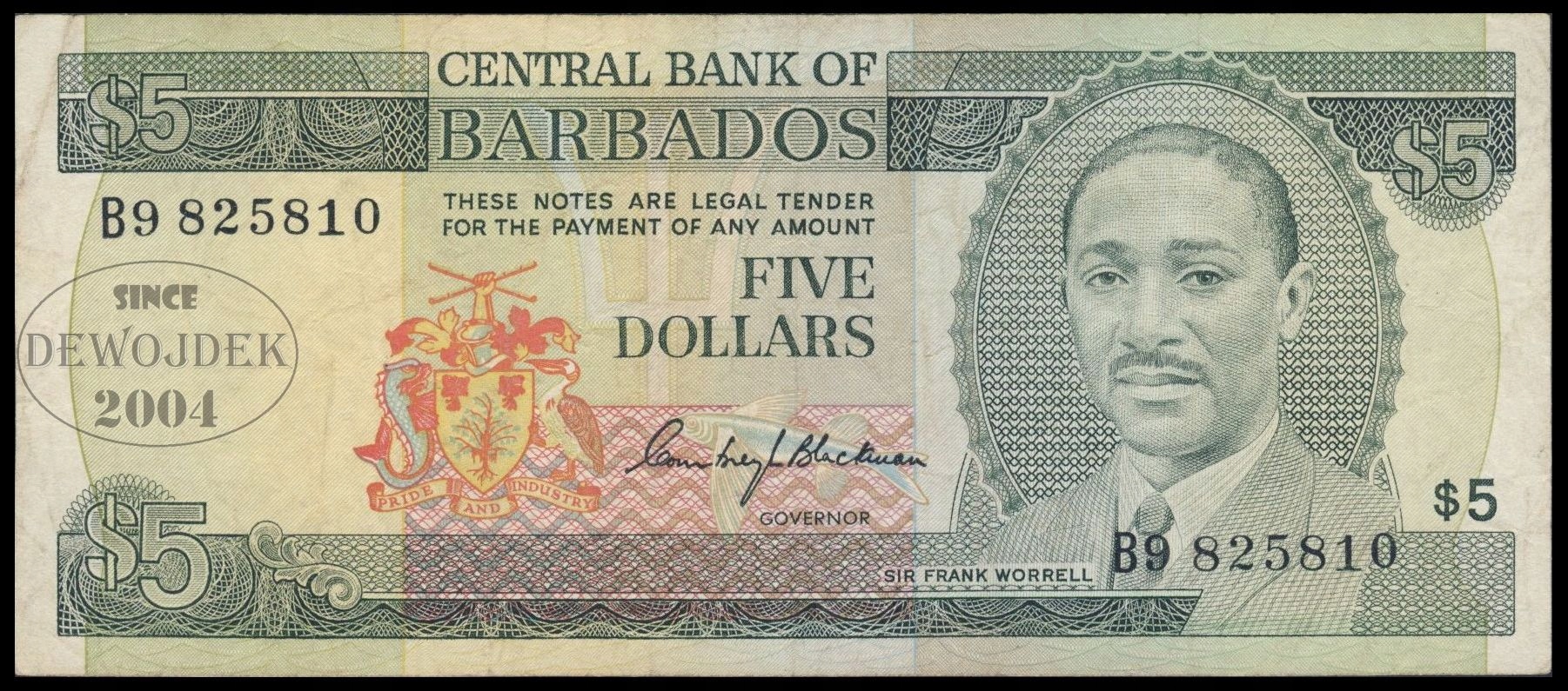 BNA - BARBADOS 5 Dolarów Dollars 1975 B9 825810 # P32 # VF