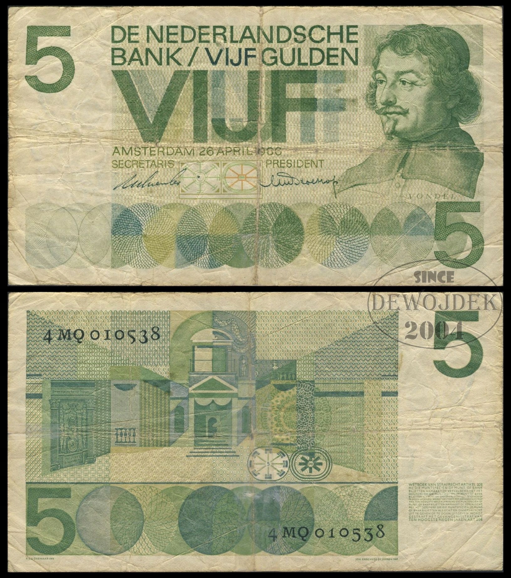 BNA — НИДЕРЛАНДЫ 5 гульденов 1966 года 4MQ 010538 # P90a