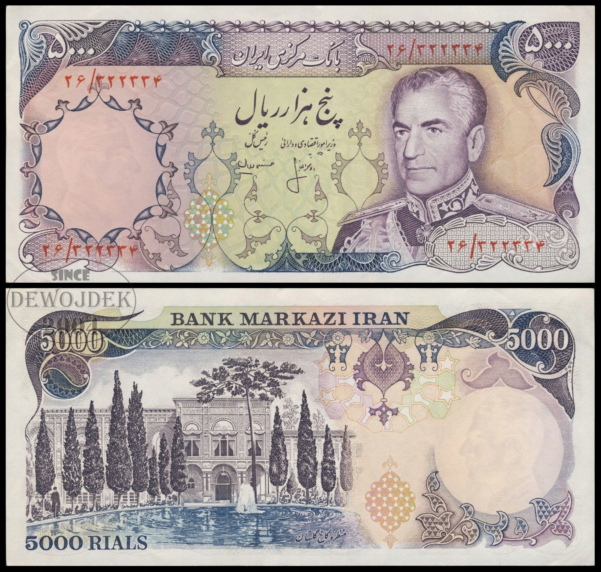 BNA - Iran 5000 Rials 1974 26/322334 # P106B # Shah Pahlawi Rare # XF
