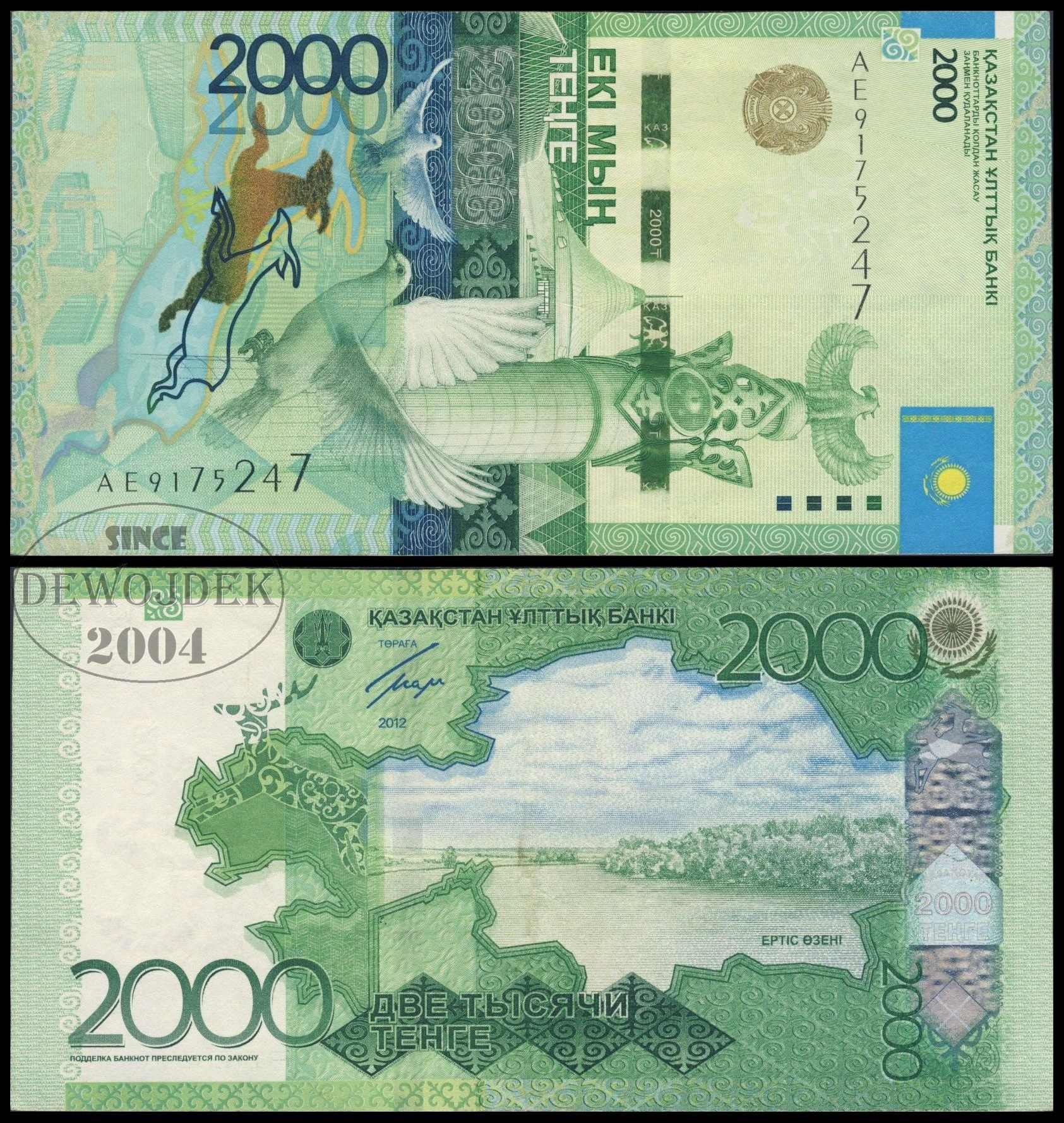 BNA - KAZACHSTAN 2000 Tenge 2012 AE 9175247 # P41 # VF/XF