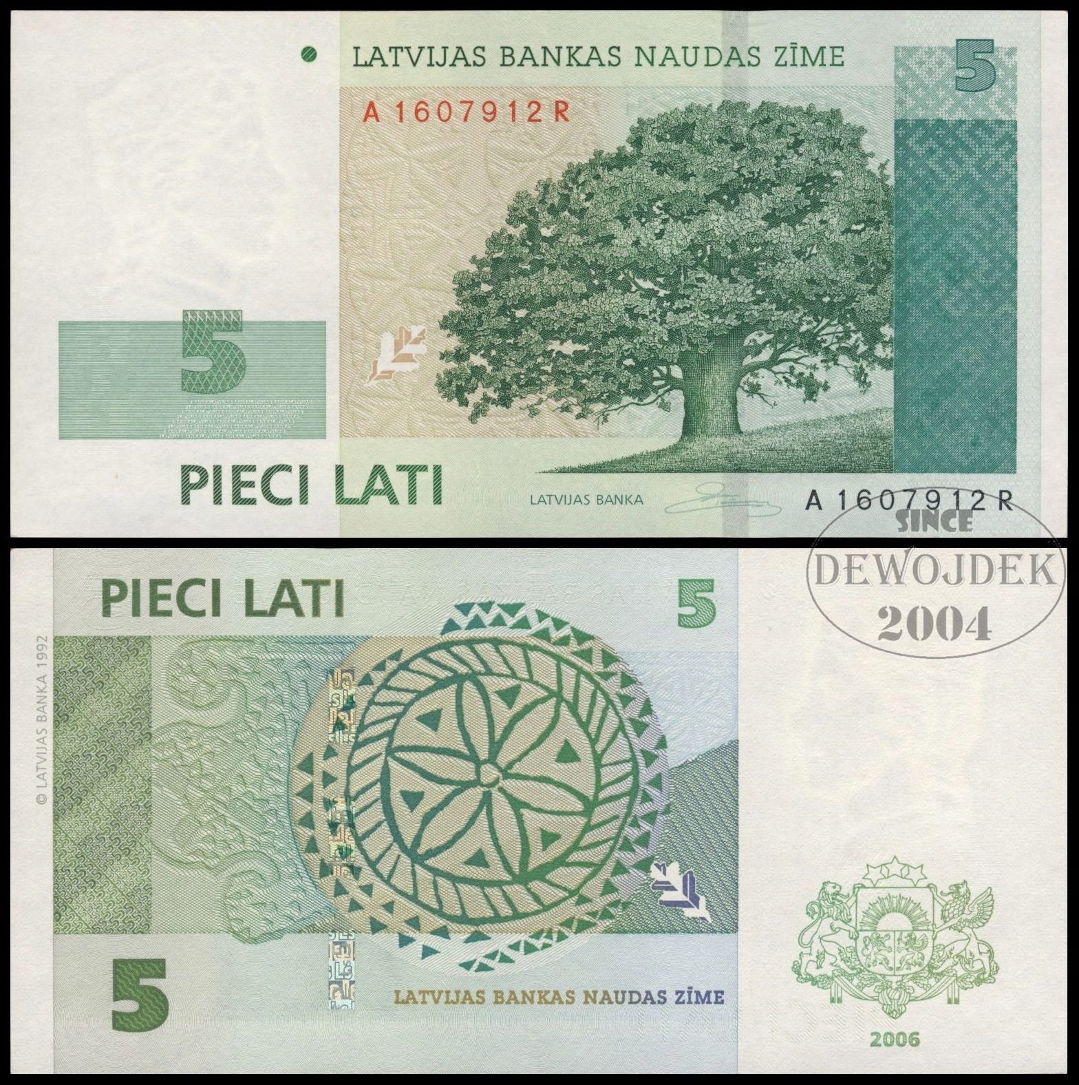BNA - LATVIA ŁOTWA 5 Łat Lati 2006 A 1607912 R # P53a # XF+