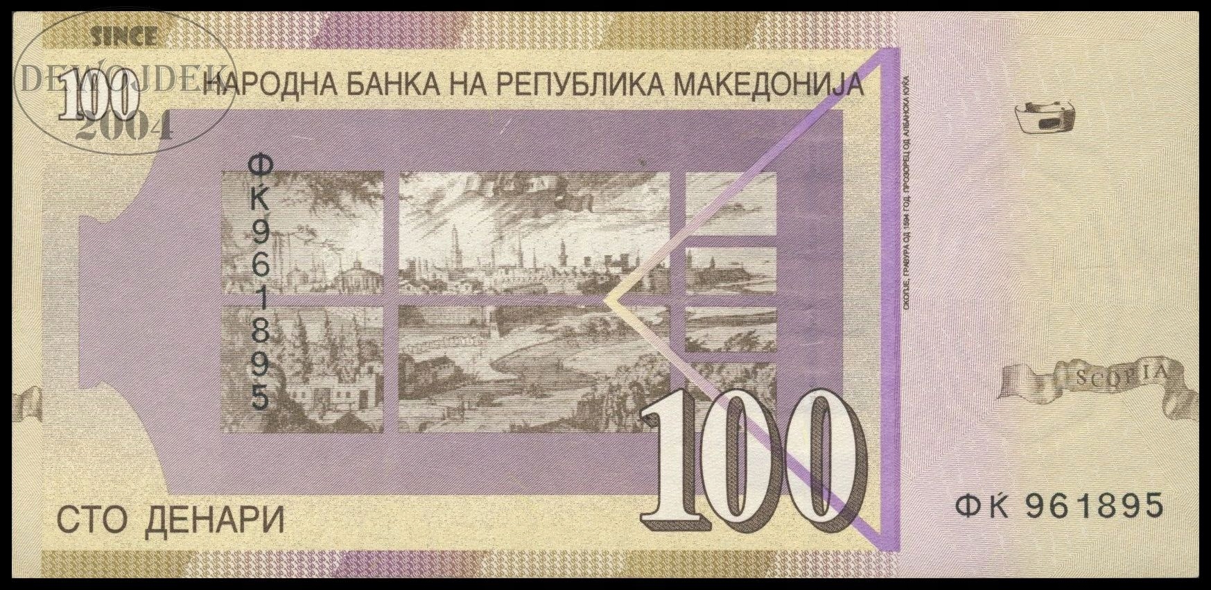 BNA - МАКЕДОНИЯ 100 динаров Денари 2013 года ФK 961895 # P16k # VF++